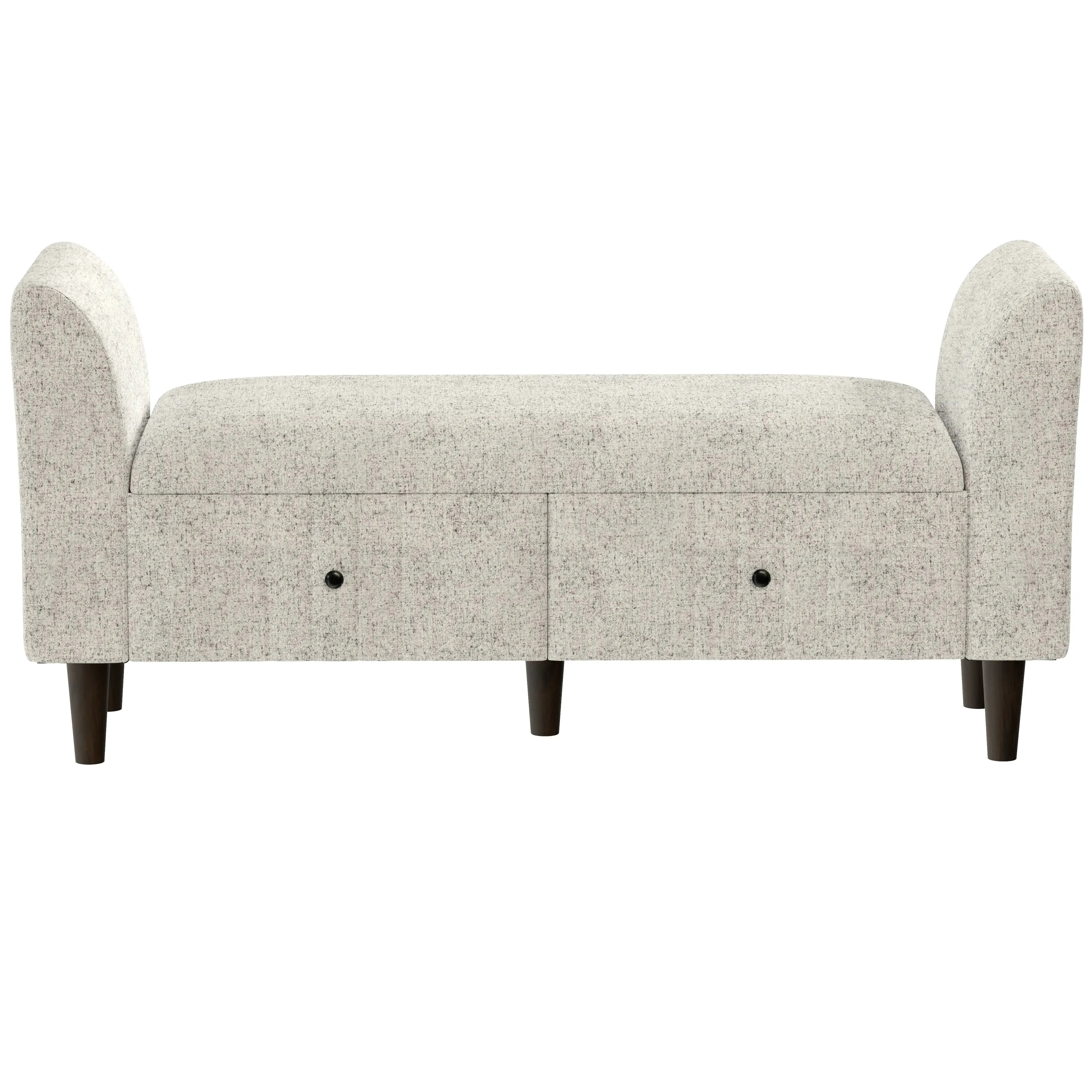 Wrapped in a soft, lightly textured chenille fabric, the Emily Ottoman is as inviting as it looks. The subtle flecked tones of the beige contemporary fabric and traditional solid wood legs match any décor, while the vertical channel stitching on the drawer fronts adds a delicate touch of detail. As you pull open the smooth-gliding drawers, you’ll find a hidden home for everything from cozy blankets to remote controls to keep your space clutter-free. The Emily Ottoman is a statement piece that quietly transforms your living area.