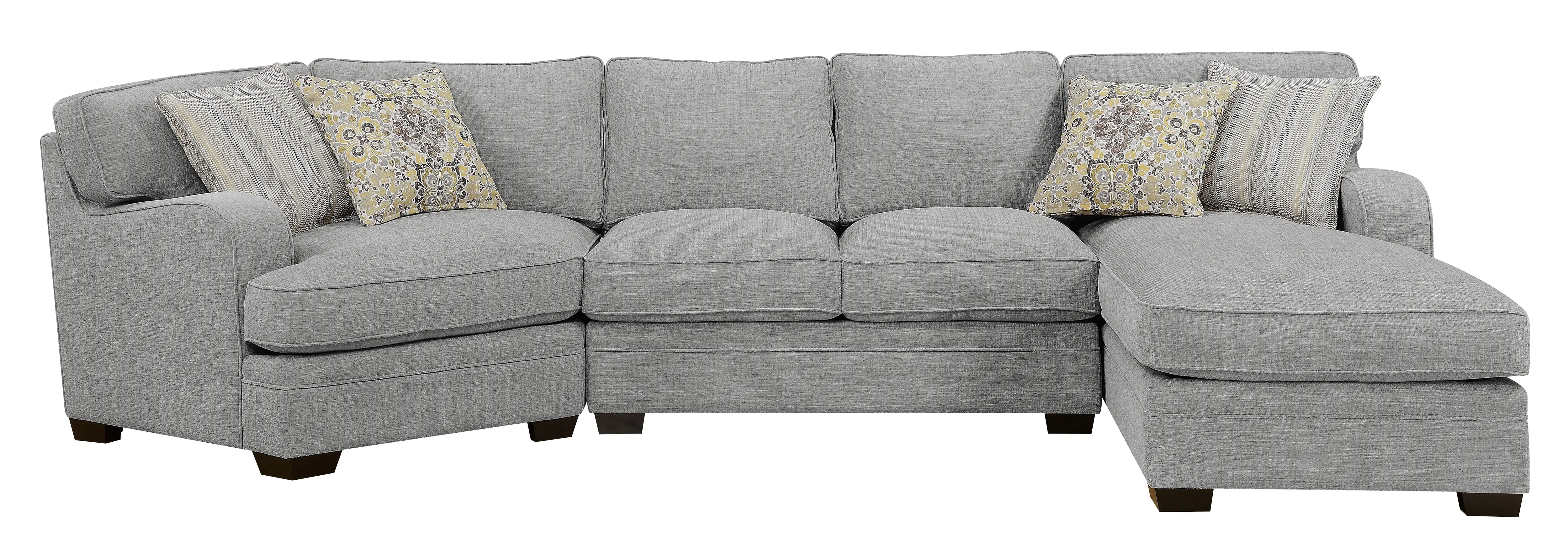 Uniquely designed to configure best to your needs, the Analiese collection combines the utility of a modular configuration with transitional styling. Pops of subtle color and pattern in the accent pillows add dimension to the classic chenille-textured upholstery. Create your perfect layout from an armless chair, armless loveseat, corner chair that also functions as an end piece, spacious chaise for lounging, and an inviting cuddler for curling up! The Analiese sectional will look beautiful tucked into a cozy corner or defining an open concept space with a style that will last for years to come.