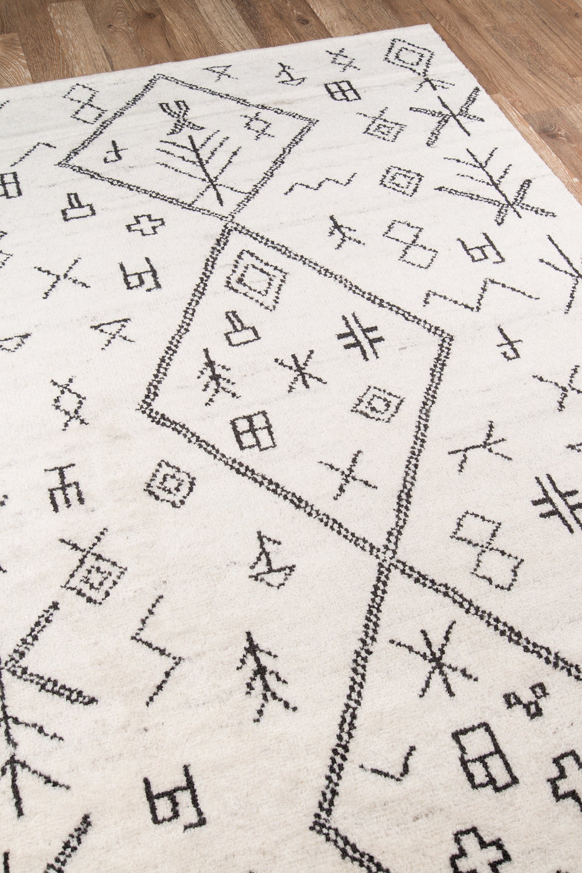 Inspired by traditional handcrafted Moroccan rag rugs, this decorative floorcovering presents an updated take on tribal motifs. Chic geometric patterns, repeating diamonds and exotic icons are presented in soft neutrals and bold primary colors. Each rug is hand knotted in 100% natural wool fibers with an enduring craftsmanship that reflects the's nomadic heritage.