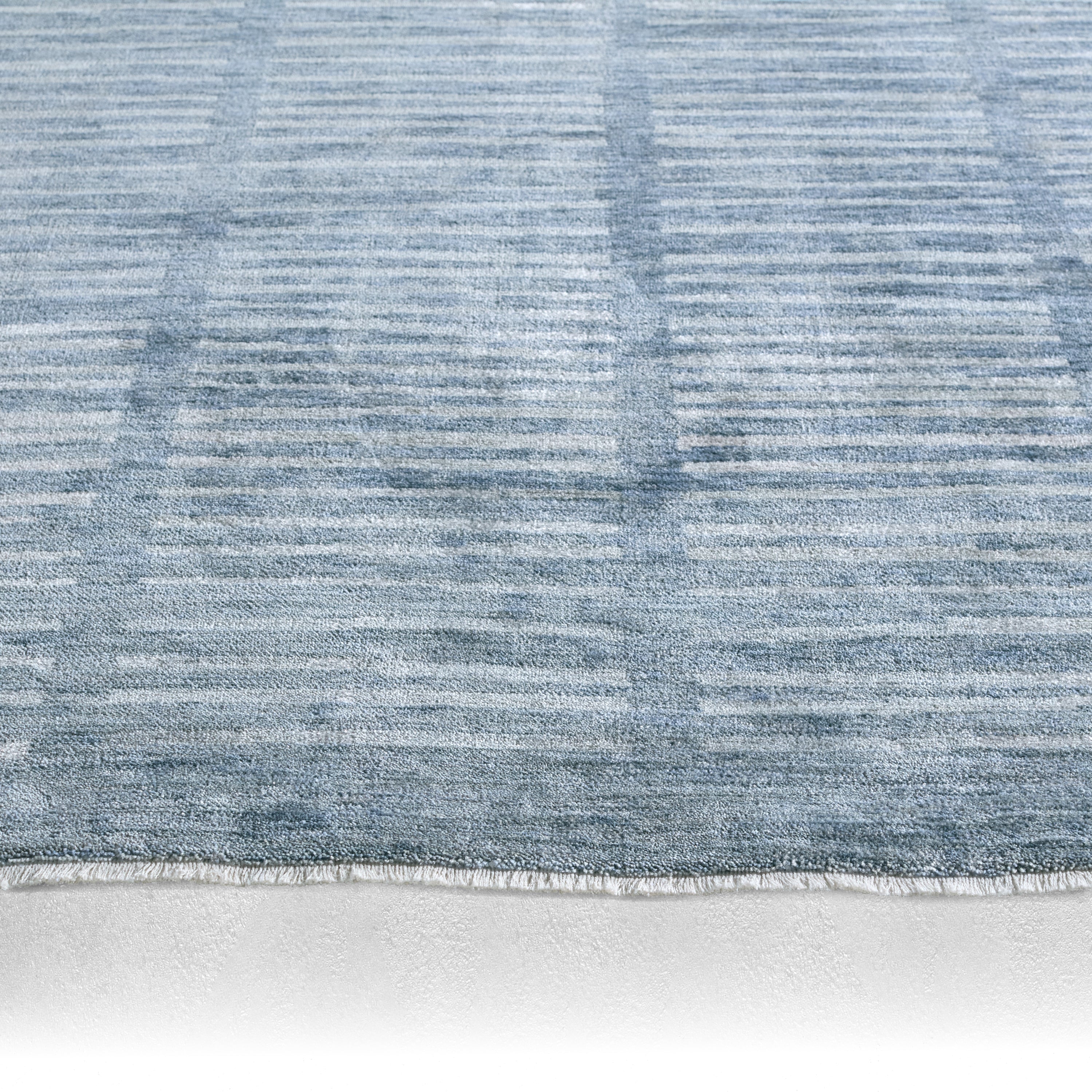 The Ballad collection features soft luxurious pile and serene, dimensional colorways created by the space-dyed yarns. The Dounia area rug boasts a subtly striped pattern that complements transitional and contemporary spaces with grounding tones of blue and light grey. Perfect for heavily trafficked spaces, this indoor, polyester rug is easy to clean and ideal for homes with pets and children.