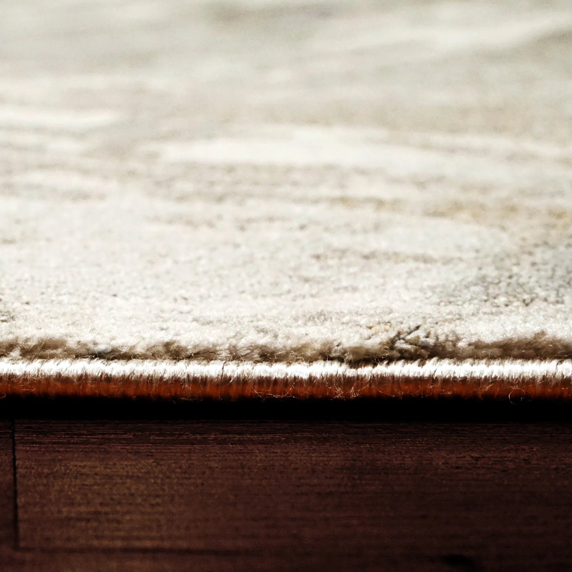 Castilla is a blend of shrink polyester and polypropylene, machine-made in Turkey. It's tightly packed fibers with a captivating shimmering sheen create for both density in touch and shine in appearance. The soft beiges, greys, and blues make these rugs the perfect complement to neutral settings. The sheen across the surface gives the designs and colors different appearances depending on the angle upon which the rug is looked at.