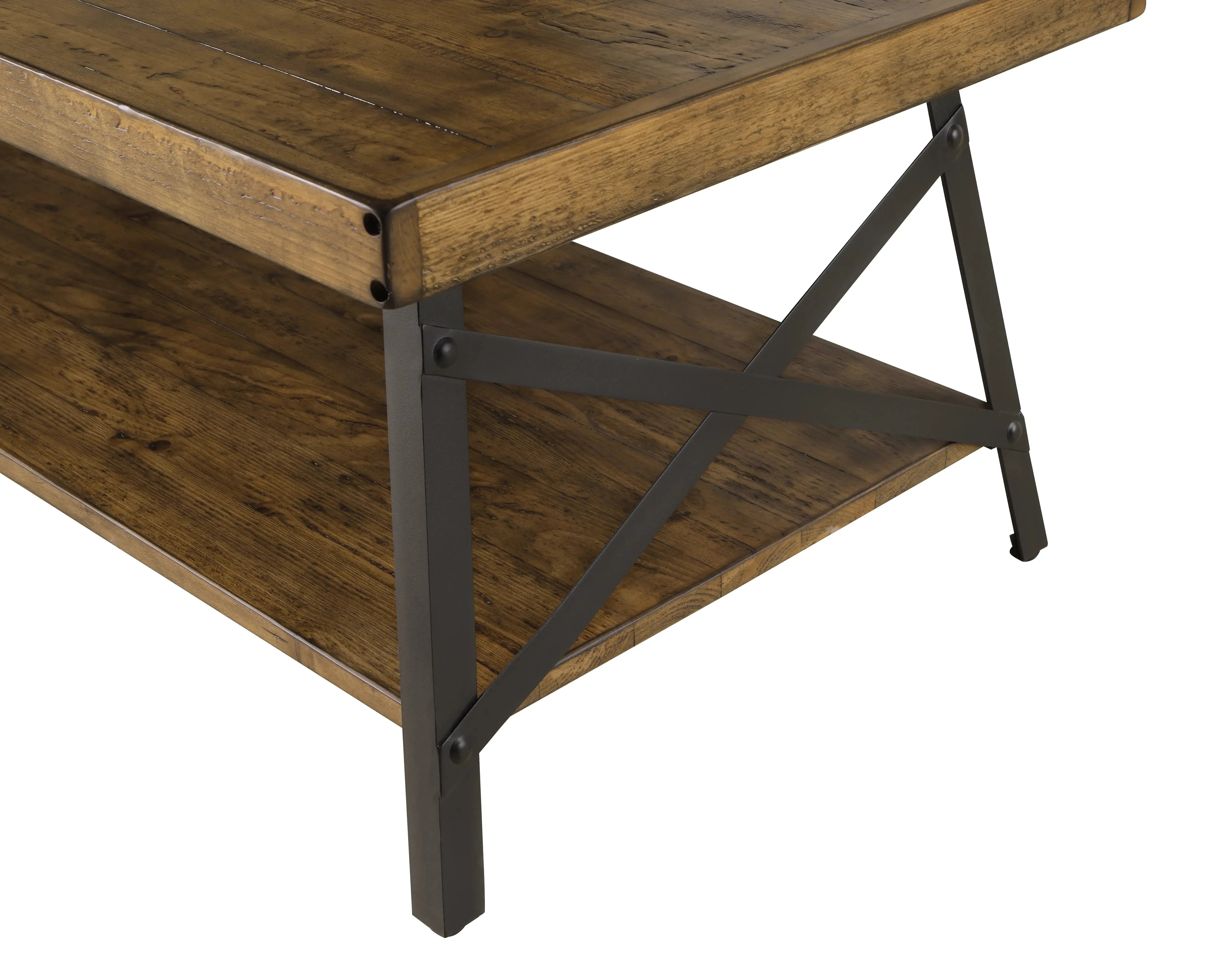The wood and steel of the Chandler collection pair brilliantly with any style family or living room, instantly creating the look and feel of history in your space. The planked top highlights the wood’s natural knots and grain and will only look better with age. Solid steel angled legs and cross-bracing with metal rivet detailing add a dash of architectural interest to the modern rustic Chandler.
