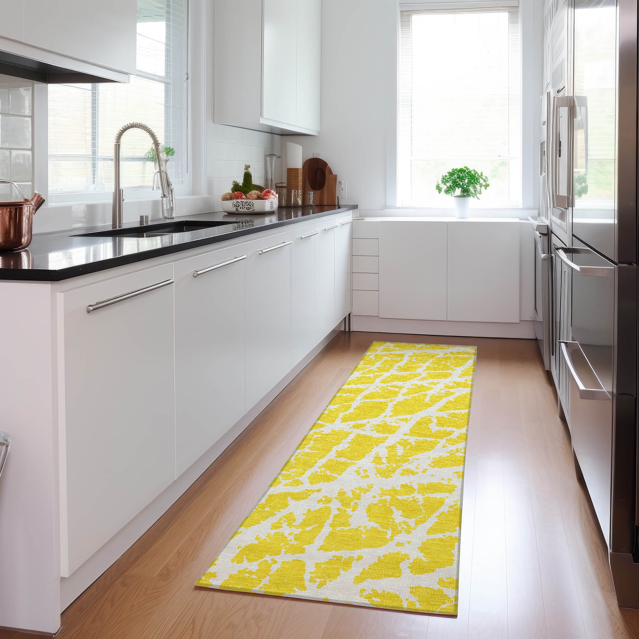 Brighten your home with our lively and enchanting area rug, celebrating an organic and modern crackle transitional pattern. The design is a joyous blend of transitional and organic elements, seamlessly fitting into any decor. The rug is UV stabilized, making it a fun addition to both indoor spaces like your living room, and outdoor spaces like your patio. With its ultra-thin design and an incorporated non-skid backing, you won't need to worry about buying a separate rug pad. Cleaning up after a family gathering or a pet party has never been easier, as it's machine-washable. Our pride in crafting ensures you're getting a rug that's not just eye-catching, but of the finest quality too!