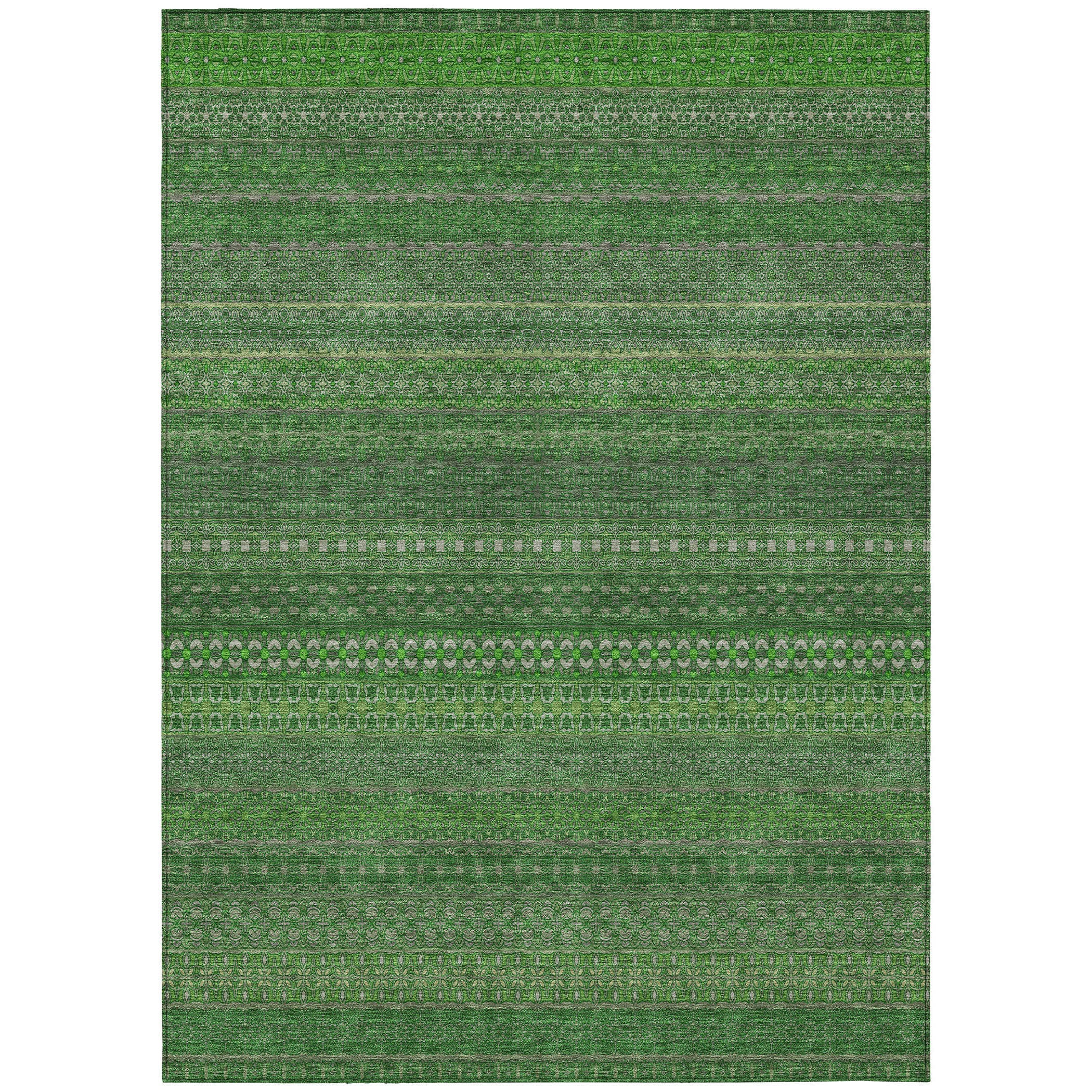 Step into a world of whimsy with our area rug, featuring an eclectic mix of shapes and motifs that add a touch of playfulness to your floor. This transitional striped rug is a true statement piece. With UV stabilization, it can be confidently placed indoors or outdoors. The ultra-thin construction includes an incorporated non-skid backing, ensuring stability and removing the need for a separate rug pad. It's machine-washable and designed to withstand the demands of a family-friendly home.
