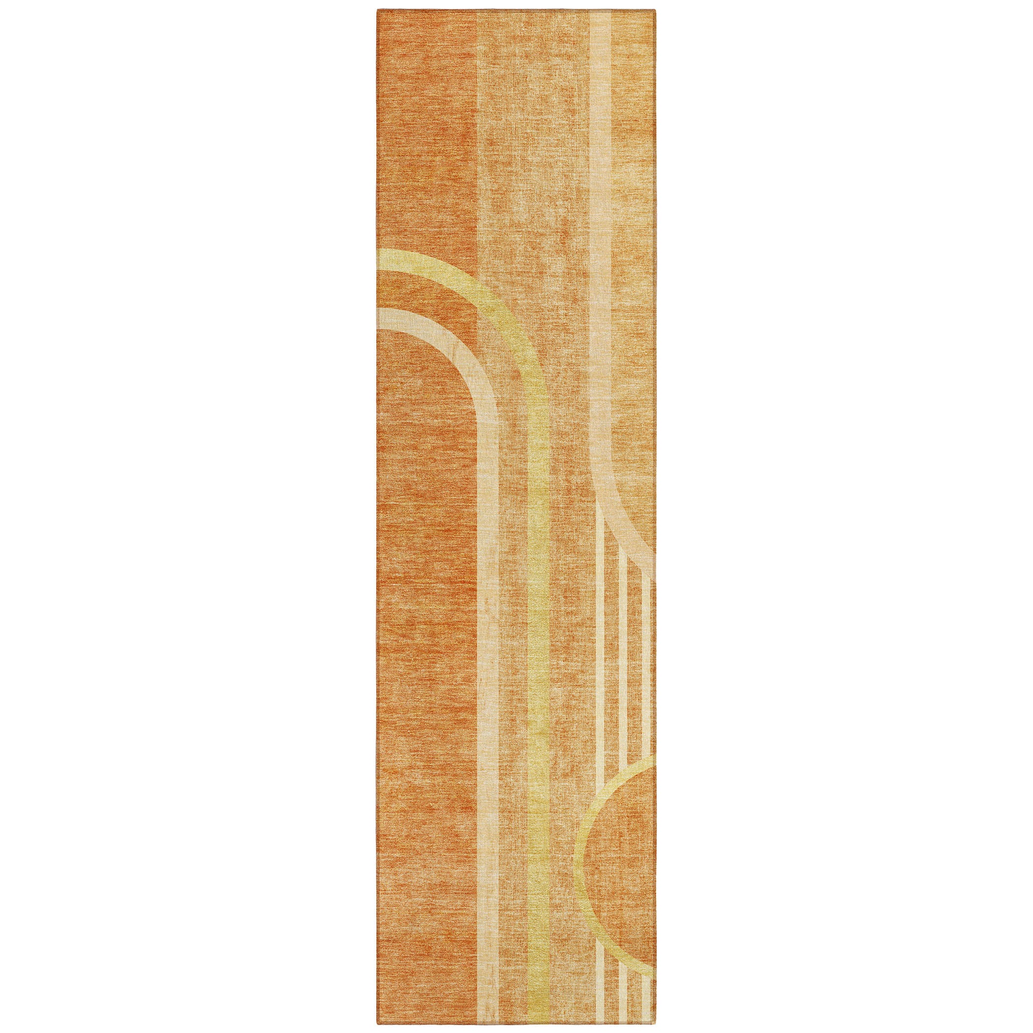 Revitalize your living space with our area rug, inspired by the timeless allure of transitional Art Deco designs, blending geometric shapes for a visually captivating effect. This transitional Art Deco rug effortlessly elevates your home decor, adding a touch of sophistication and elegance. It is UV stabilized for both indoor and outdoor use, ensuring its colors remain vibrant and true to their original beauty. The ultra-thin construction with an incorporated non-skid backing eliminates the need for a separate rug pad, providing stability and preventing slips or trips. Machine-washable and designed to be family and pet-friendly, this rug combines practicality and style.