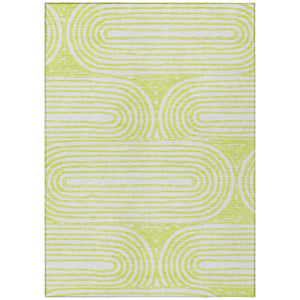 Step into the modern era with our art deco inspired area rug, featuring a distinctive ribbed oval pattern repeat that sets it apart. The contemporary design lends a fresh and fashionable flair to any room. UV stabilized for both indoor and outdoor use, the rug provides versatile charm. Its ultra-thin construction, equipped with an incorporated non-skid backing, negates the need for a separate rug pad. Plus, it's machine-washable and perfect for family and pet-friendly homes.
