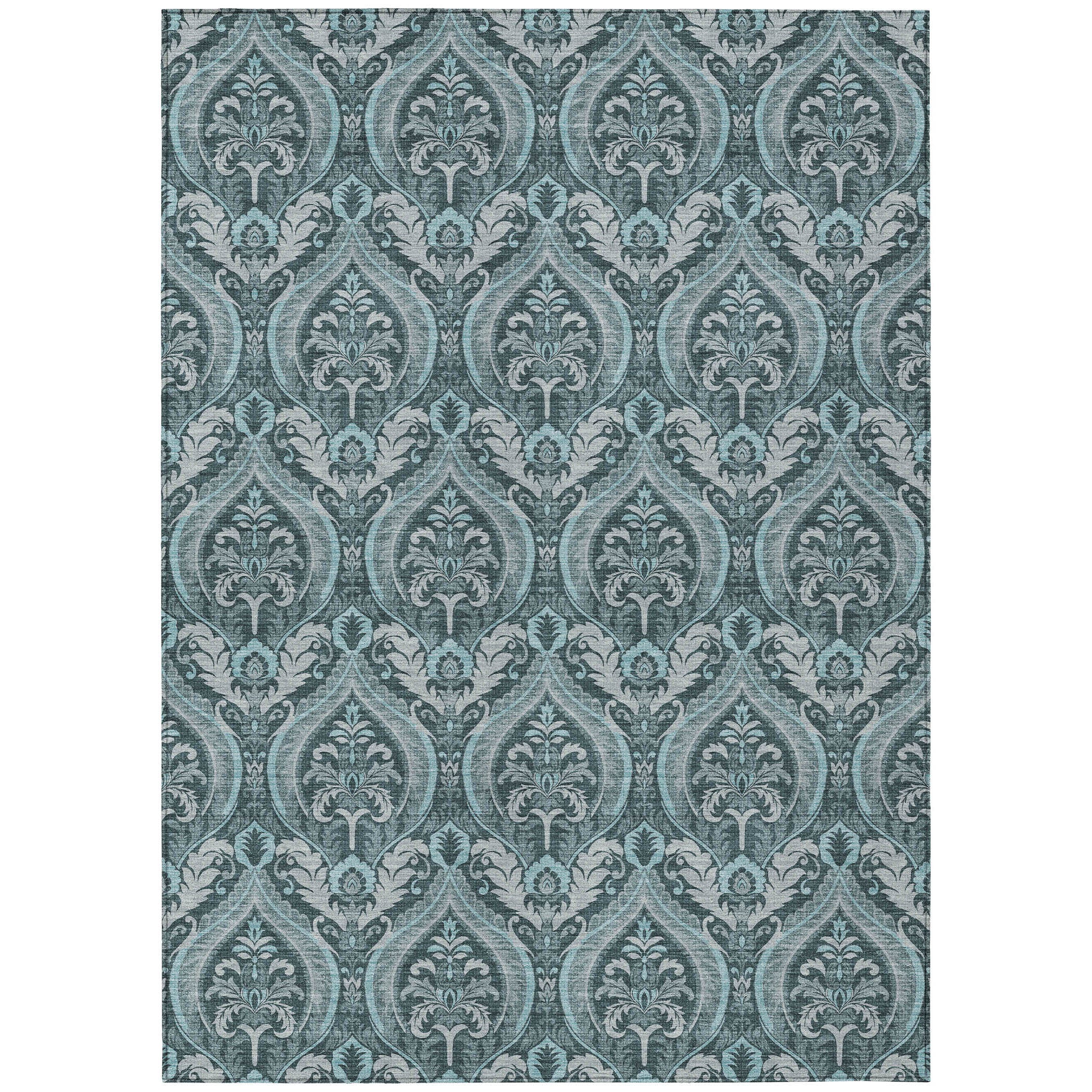 Envelop your spaces in elegance with our area rug featuring formal damask-like motifs in a uniform pattern. This transitional design creates a cohesive look that adds a sophisticated touch to any room. Its UV-stabilized material ensures suitability for both indoor and outdoor use, while the ultra-thin construction and incorporated non-skid backing make a separate rug pad redundant. Moreover, it is machine-washable, and its family and pet-friendly.