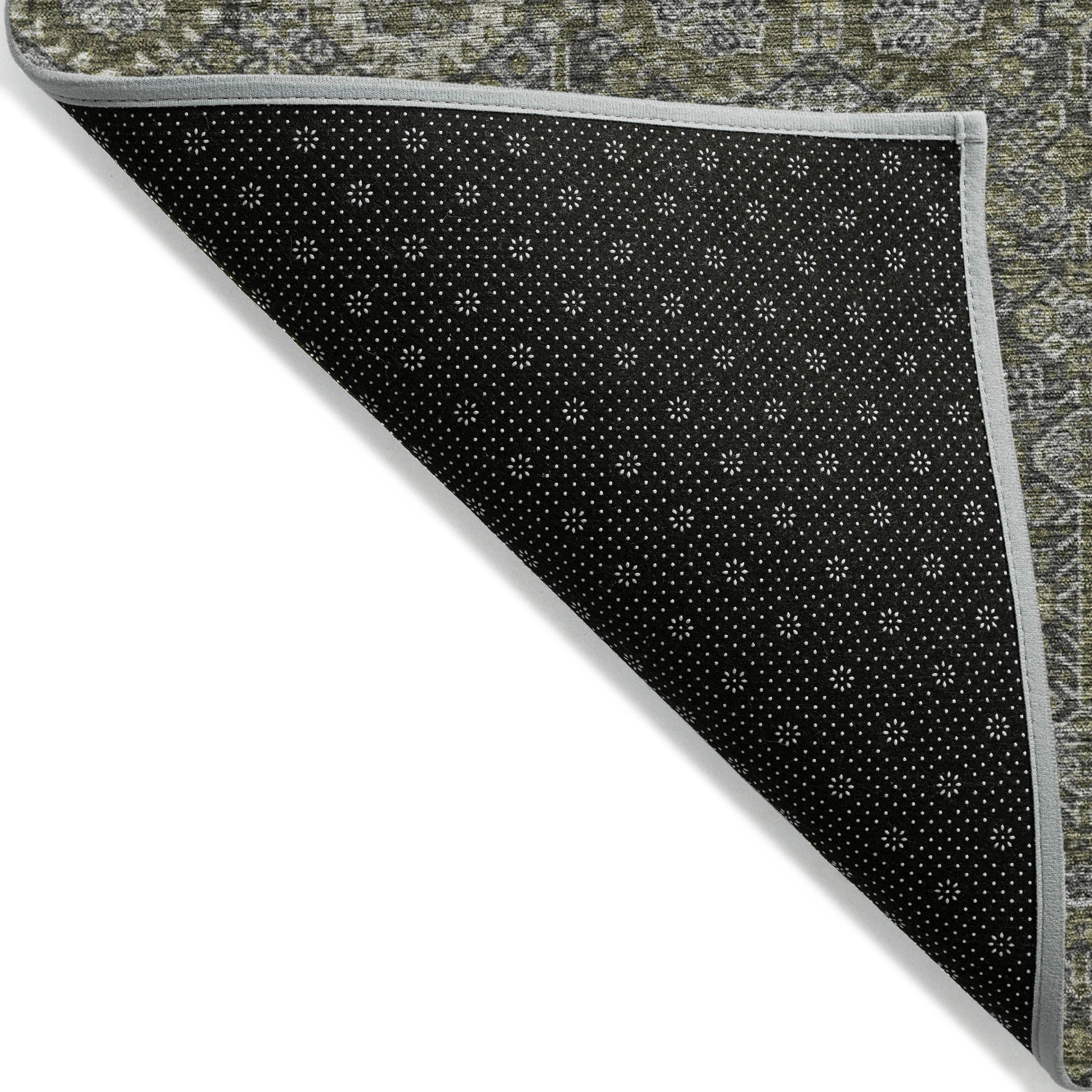 Indulge in our area rug's Bohemian inspired motifs, portraying unique shapes for a hip visual. This transitional, bohemian design ensures your décor stays fashion-forward. UV stabilized for indoor and outdoor use, this rug features ultra-thin construction with an incorporated non-skid backing, rendering a separate rug pad unnecessary. It offers easy-care with it's machine-washability, making it very family and pet-friendly.