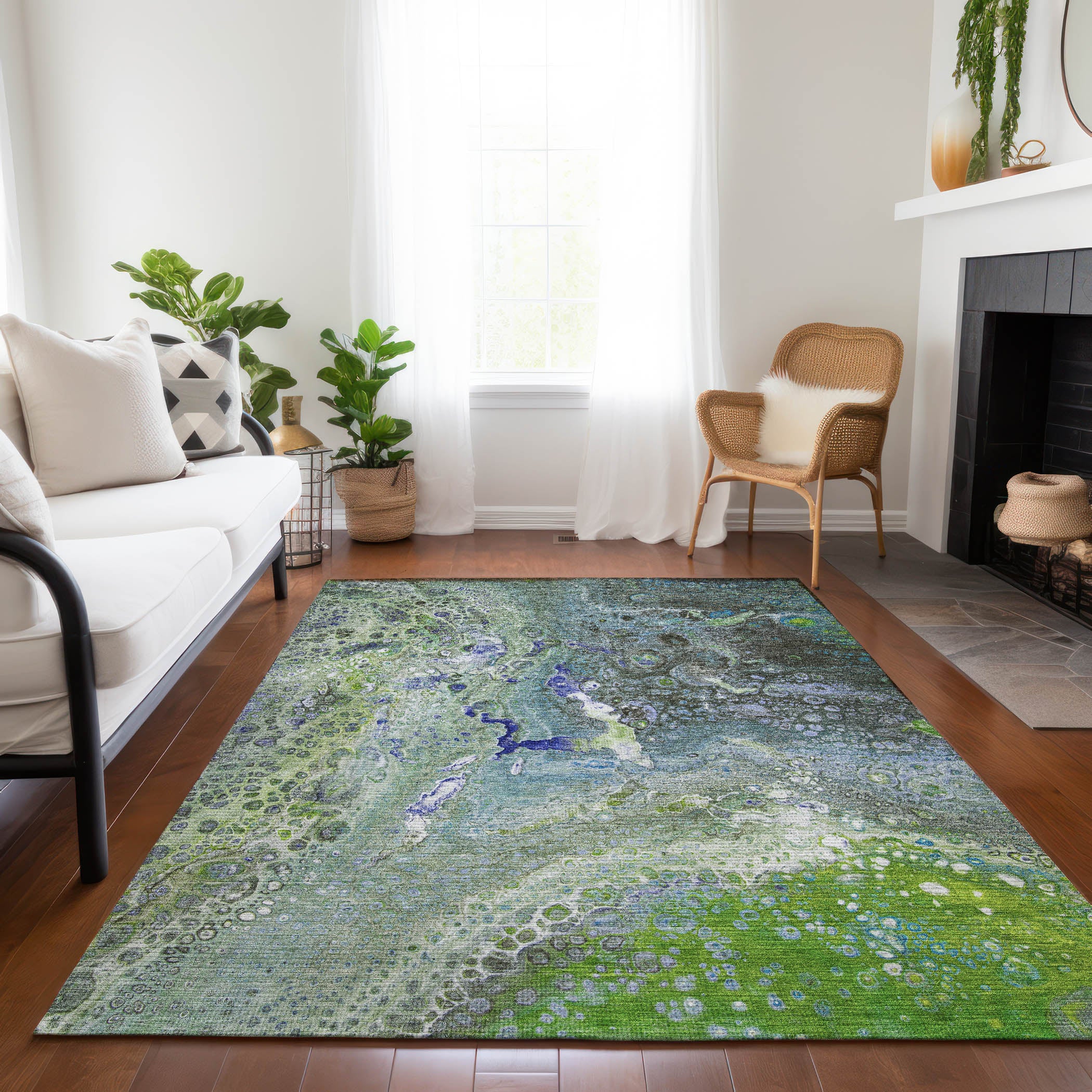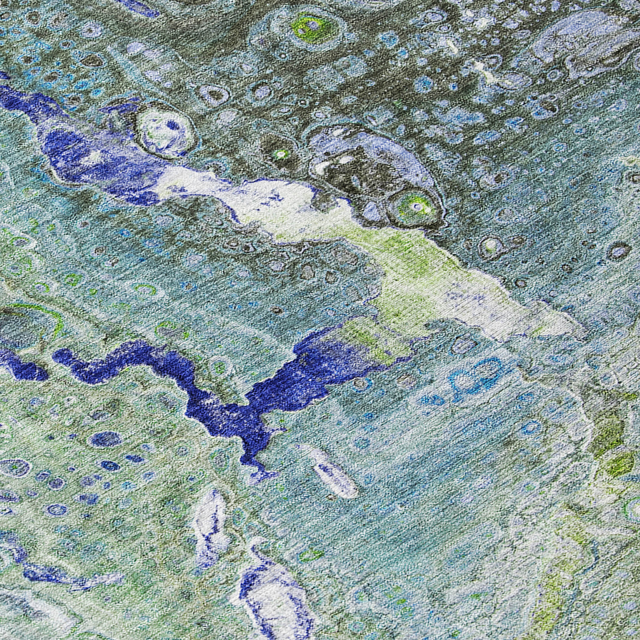 Step into the world of modern design with our mesmerizing area rug, featuring unpredictable patterns of cells that combine art with vibrant color. This abstract masterpiece brings a touch of contemporary flair to any space. For unmatched convenience, it's UV stabilized, allowing you to place it either indoors or outdoors without worrying about color fading. The ultra-thin construction comes with an incorporated non-skid backing, which means you won't need a separate rug pad. Machine-washable and family and pet-friendly, it's the practical choice for busy households.