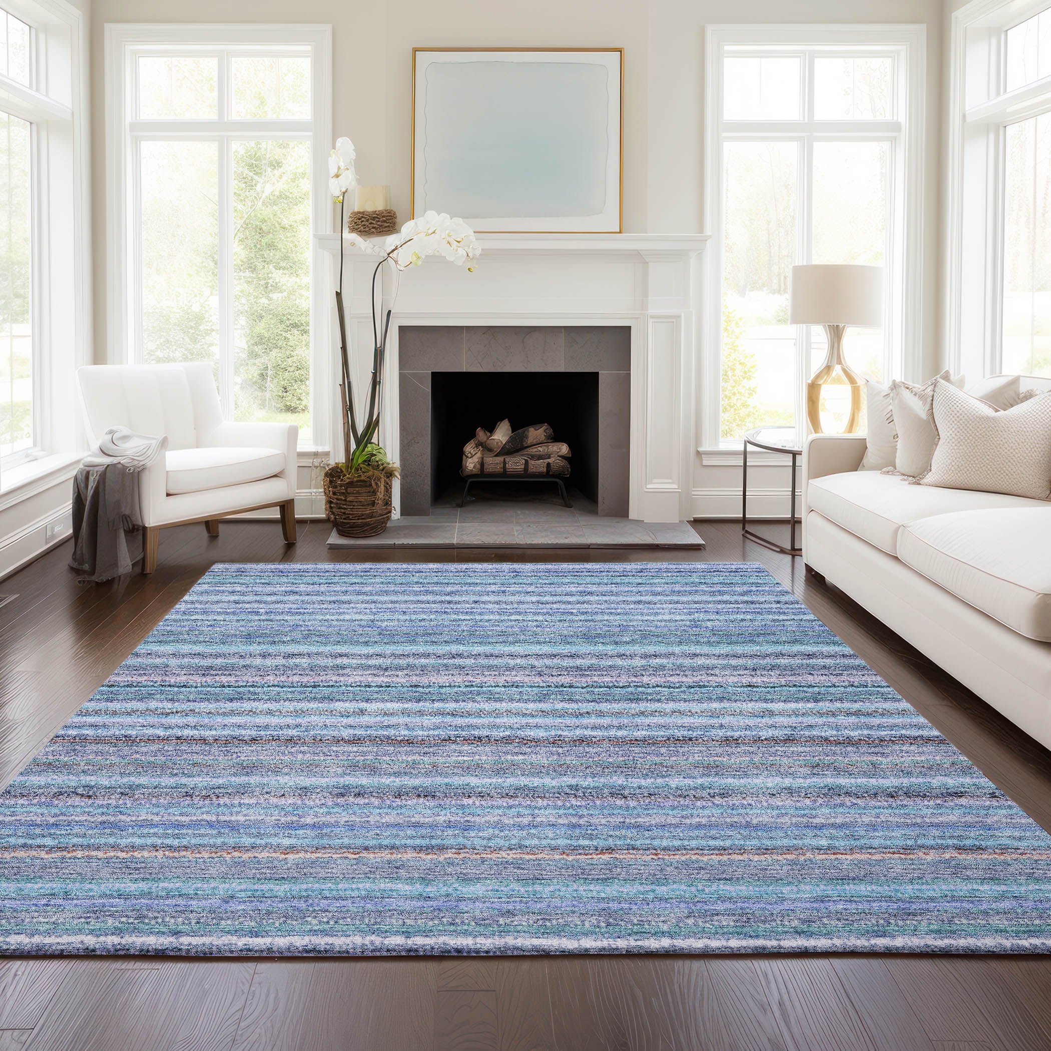 Turn heads with our captivating area rug, featuring eye-catching horizontal stripes in a transitional design that effortlessly enhances any room. The striking stripes add a layer of visual interest, making this rug the ultimate conversation starter. Designed with UV stabilization, this versatile rug can be placed both indoors and outdoors without fading. Its ultra-thin profile is complemented by an incorporated non-skid backing, eliminating the need for a separate rug pad. Plus, it's machine-washable and perfect for family and pet-friendly homes.
