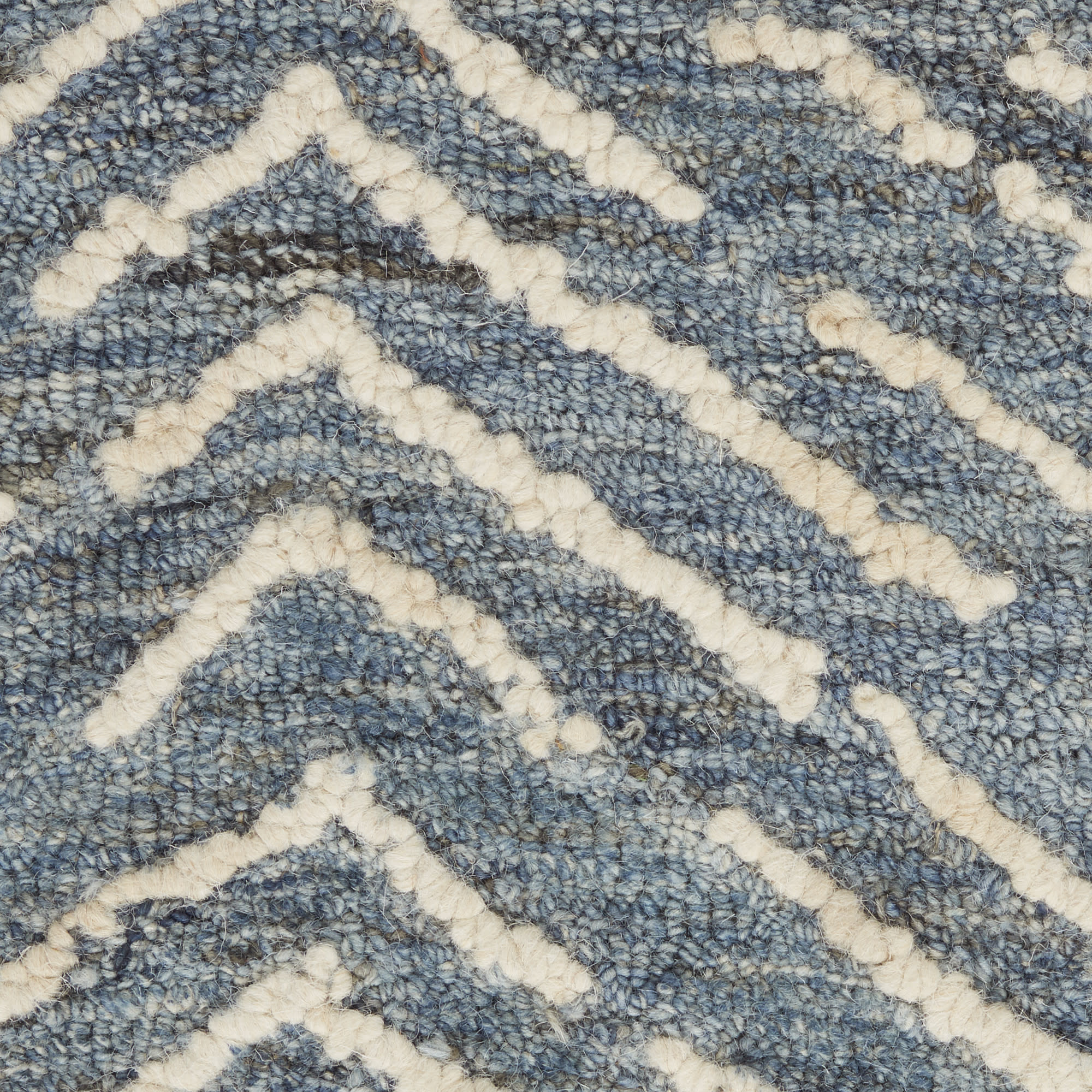 Rows of chevrons move like arrowheads across the textural surface of this free-spirited Colorado Collection area rug. Its artisanal, hand-tufted loop pile is irresistible to the touch. Enjoy the softness and durability of its easy-care, low-shed wool fibers in versatile indigo and ivory.