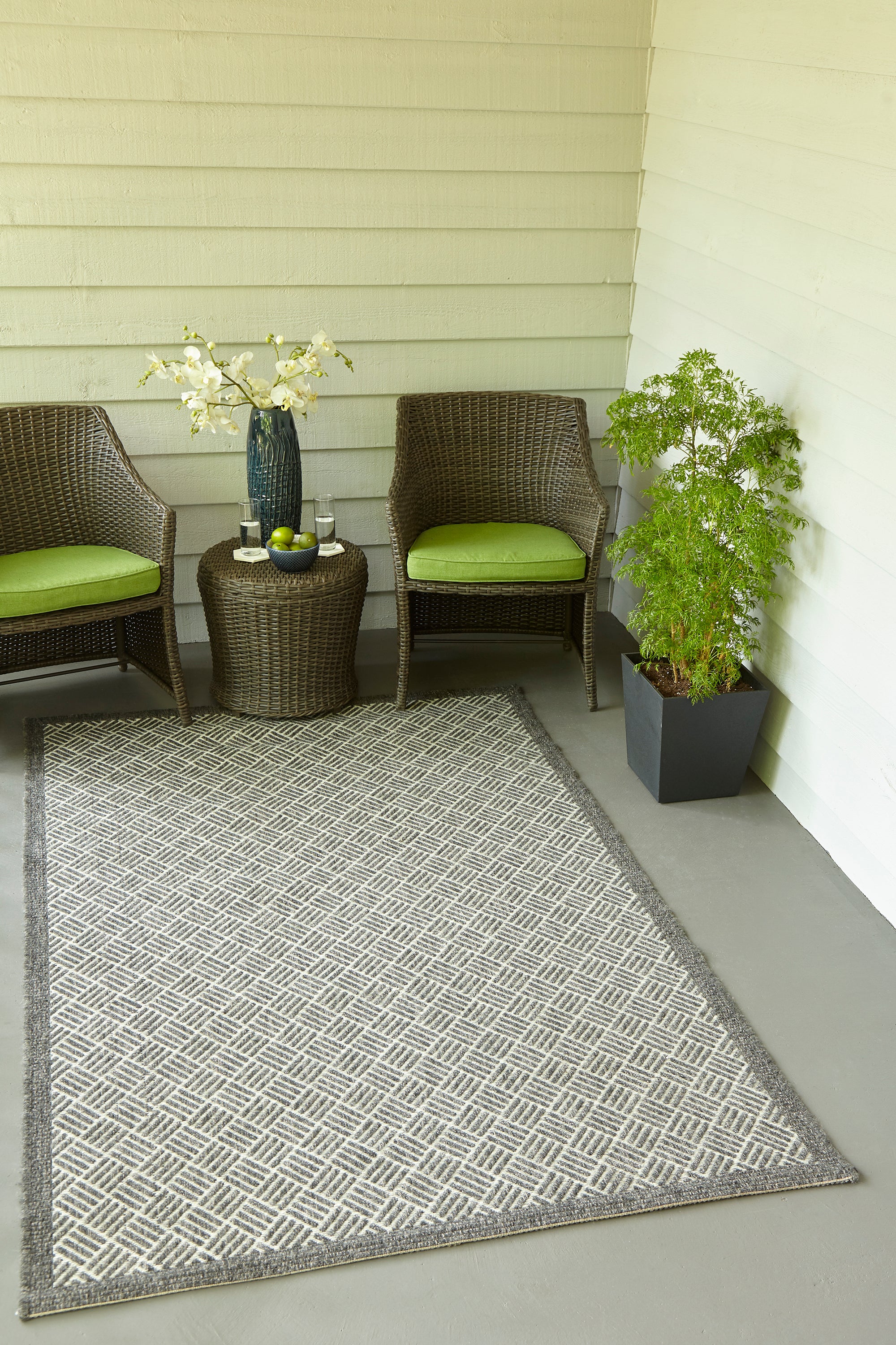 Sophistication is just a step away from the tropical style of this indoor/outdoor area rug collection. An essential design element for interior and exterior settings, each floorcovering is a fitting statement piece in natural surroundings with geometric, thatch and striated patterns that draw inspiration from island influences. All-weather polypropylene fibers soften surfaces of patios and pool decks and retain richness of color in sun or shade.