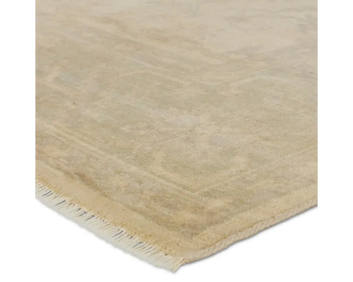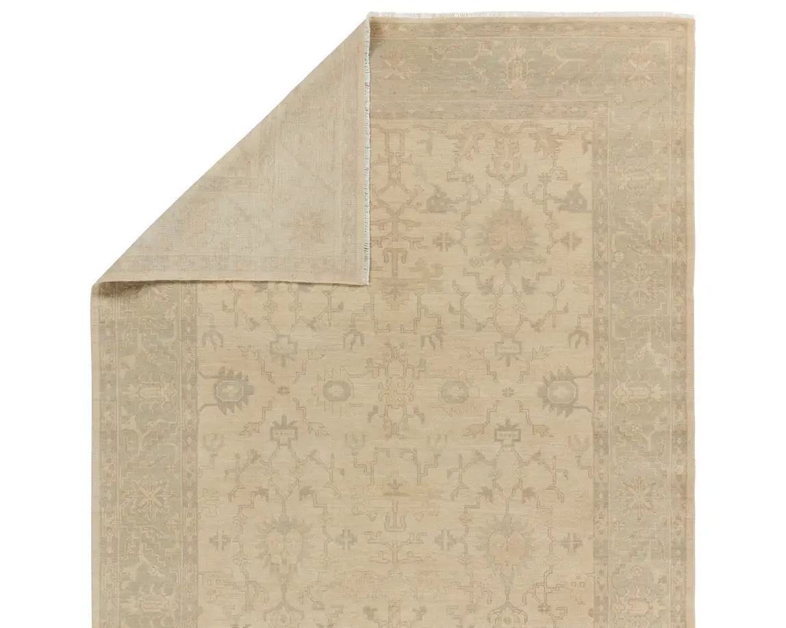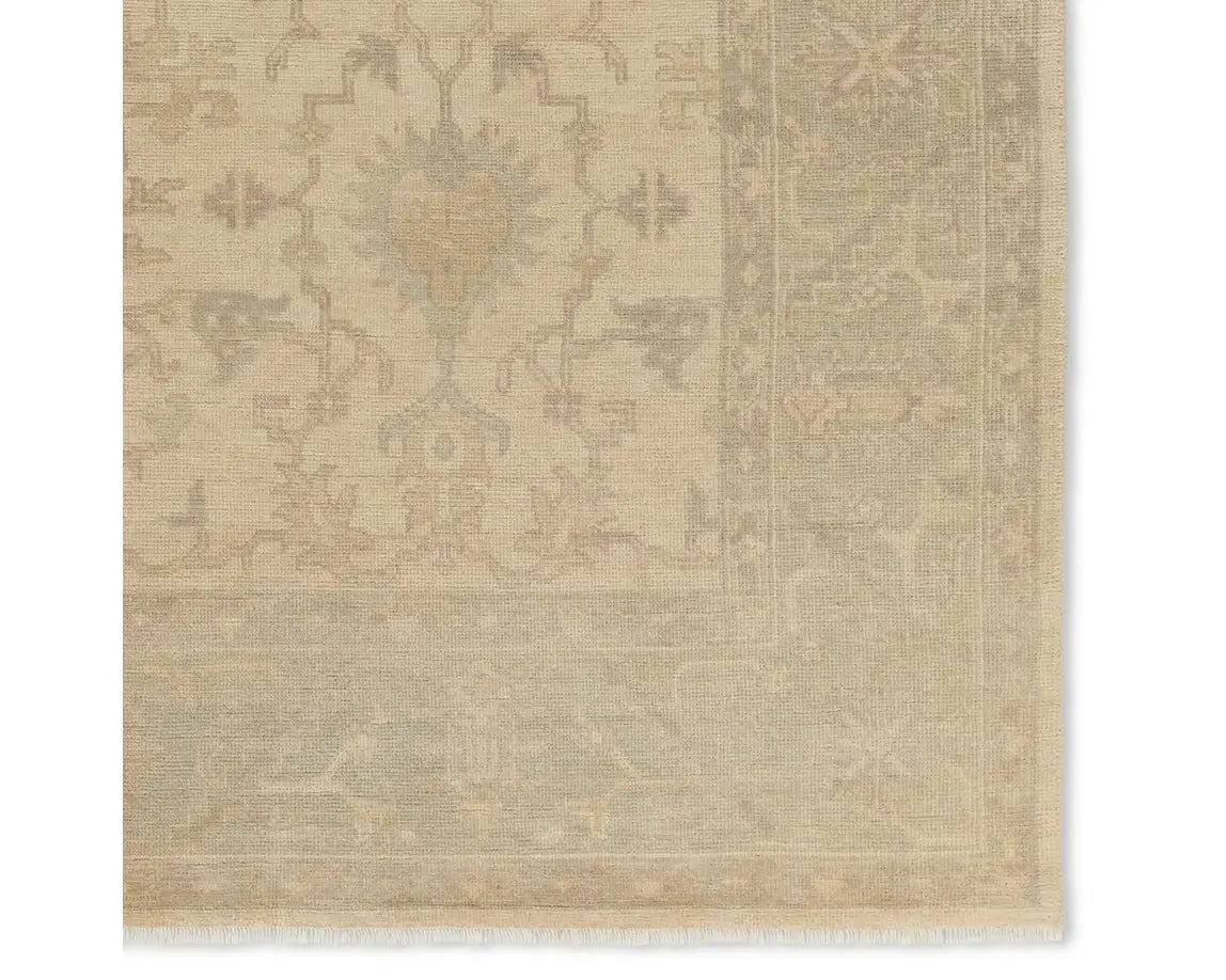 The Eloquent collection emanates traditional elegance, lending a soft and serene look to transitional homes. The Verity area rug features a faded Oushak design in muted cream, light sage, and grey tones. This hand-knotted wool rug grounds living spaces with a classic, earthy look. Crafted of durable wool and elegant viscose, this accent piece perfects low traffic areas of the home such as formal living and dining spaces or bedrooms.