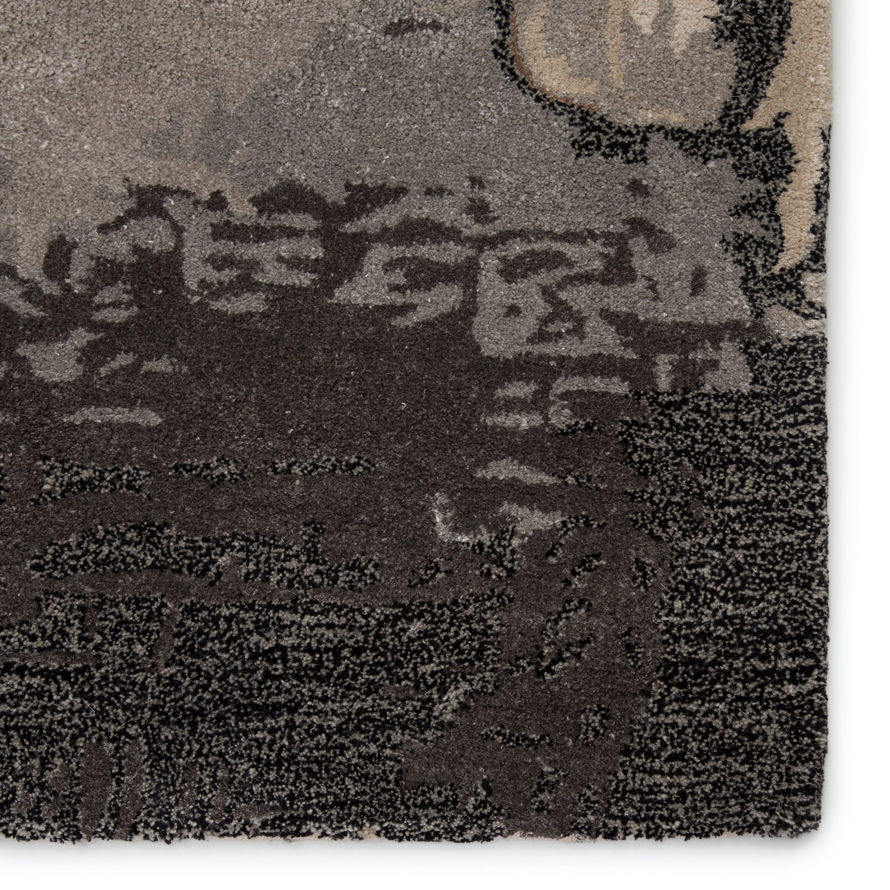 With a whimsical spirit and sophisticated flair, the Genesis collection features an assortment of hand-tufted rugs sure to liven any contemporary home. Painterly perfection describes the Juna rug. An abstract design in contrasting, neutral tones of black, grey, taupe, and a hint of gold recall a moody landscape motif, highlighted in lustrous viscose and plush wool.