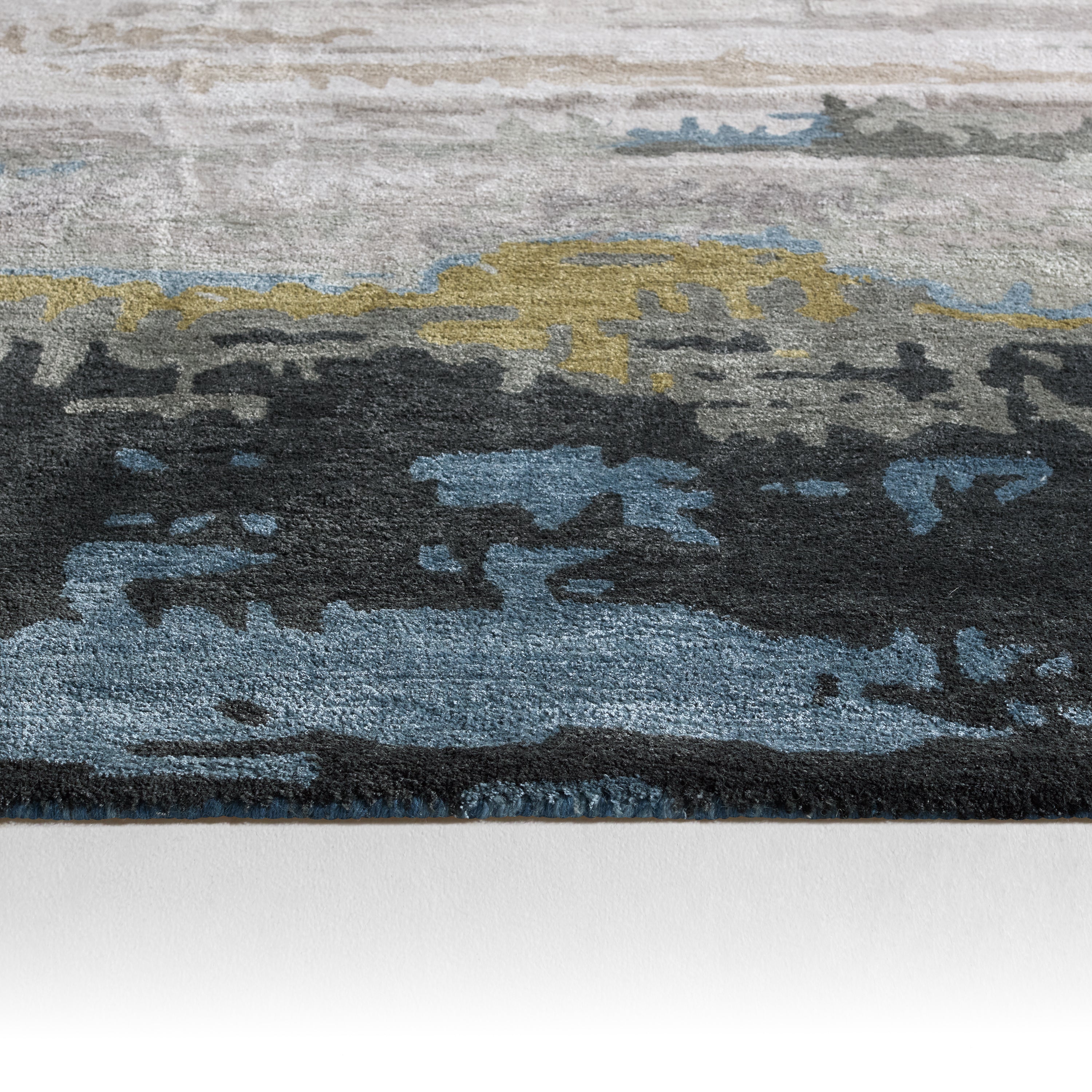 With a whimsical spirit and sophisticated flair, the Genesis collection features an assortment of hand-tufted rugs sure to liven any contemporary home. The Benna design is masterfully artistic with an elegant blend of rich black, blue, green, and grey tones. The painterly motif of this plush wool and viscose accent makes for a stand-out statement piece in any style-driven setting.