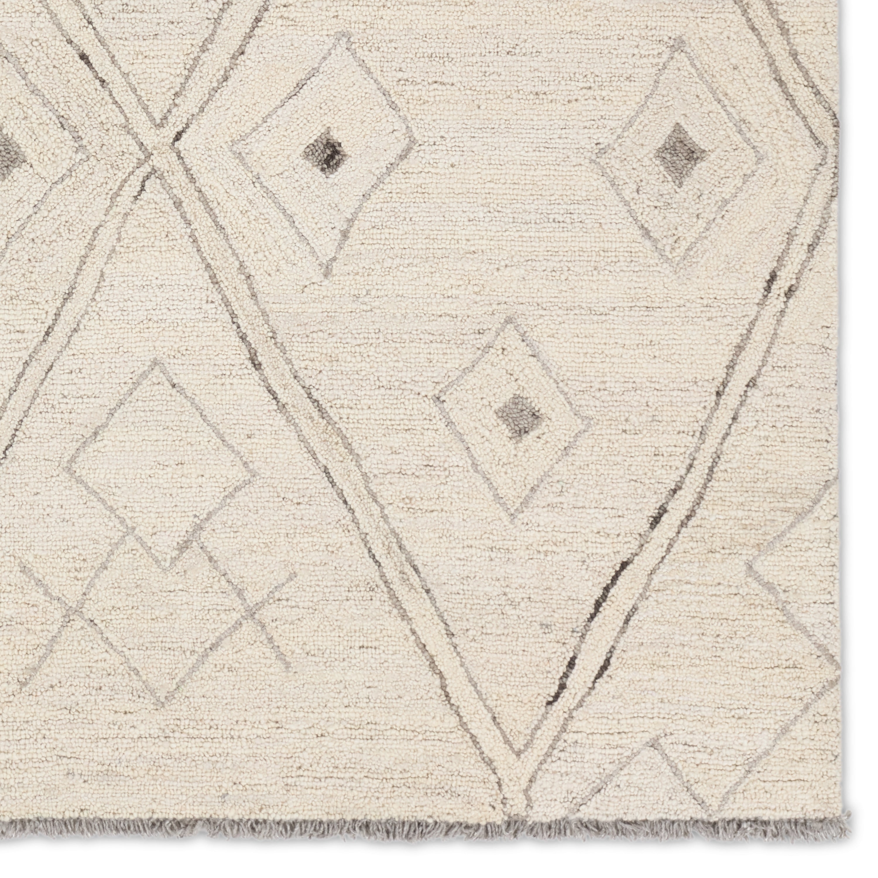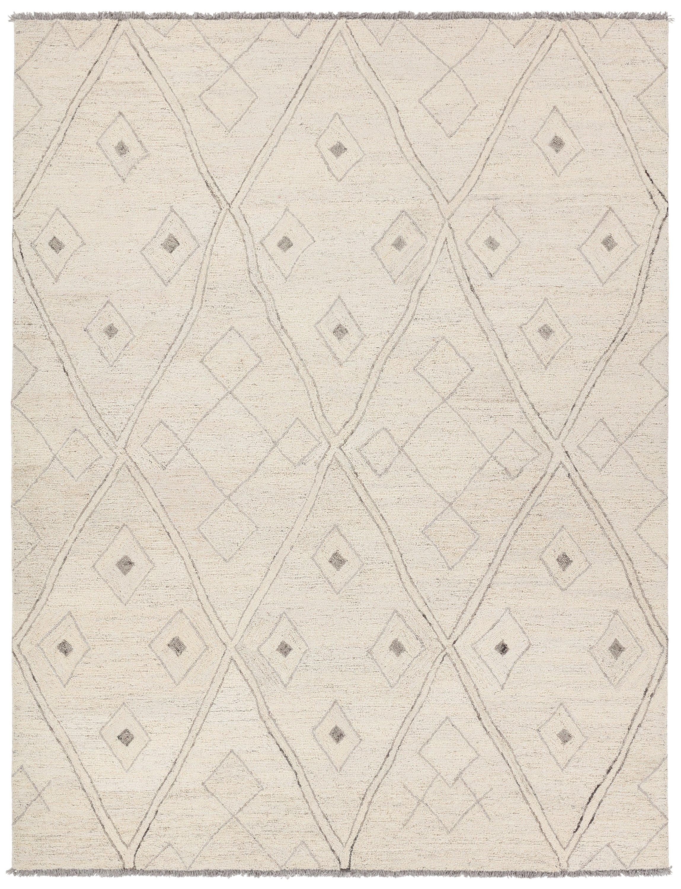 The hand-tufted Hadi collection introduces fresh looks inspired by modern Moroccan patterns and neutral colorways. The Ismael design features overlapping stripes in cream and grey hues. Short, grey fringe and 100% wool pile adds to the global appeal. This rug is naturally stain-resistant and works best in low traffic areas of the home such as bedrooms, formal living rooms, formal dining rooms, and sitting rooms.