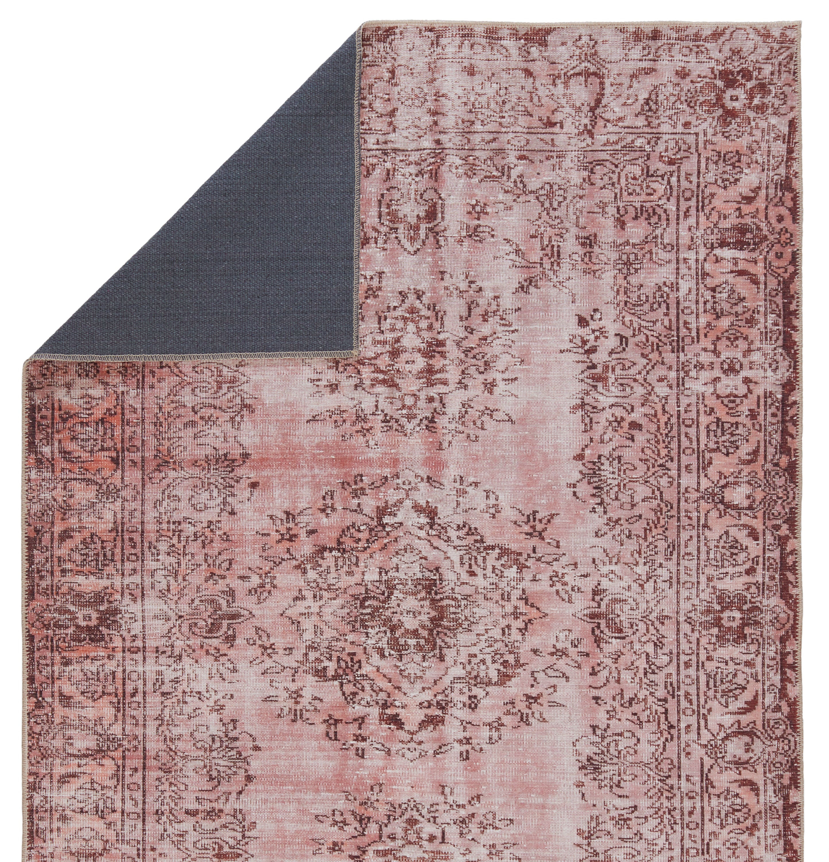 Inspired by well-traveled vintage designs, Kate Lester has joined with Jaipur Living to launch the Harman collection. This impressive assortment of antique textile designs lends heirloom-quality looks and livable style to any space. The Berxley area rug showcases a romantic floral medallion emphasized by hues of rose and maroon. This digitally printed rug boasts a perfectly distressed effect for effortless charm that is matched with durability to stand up to heavily trafficked spaces such as entryways, halls, kitchens, and living rooms.