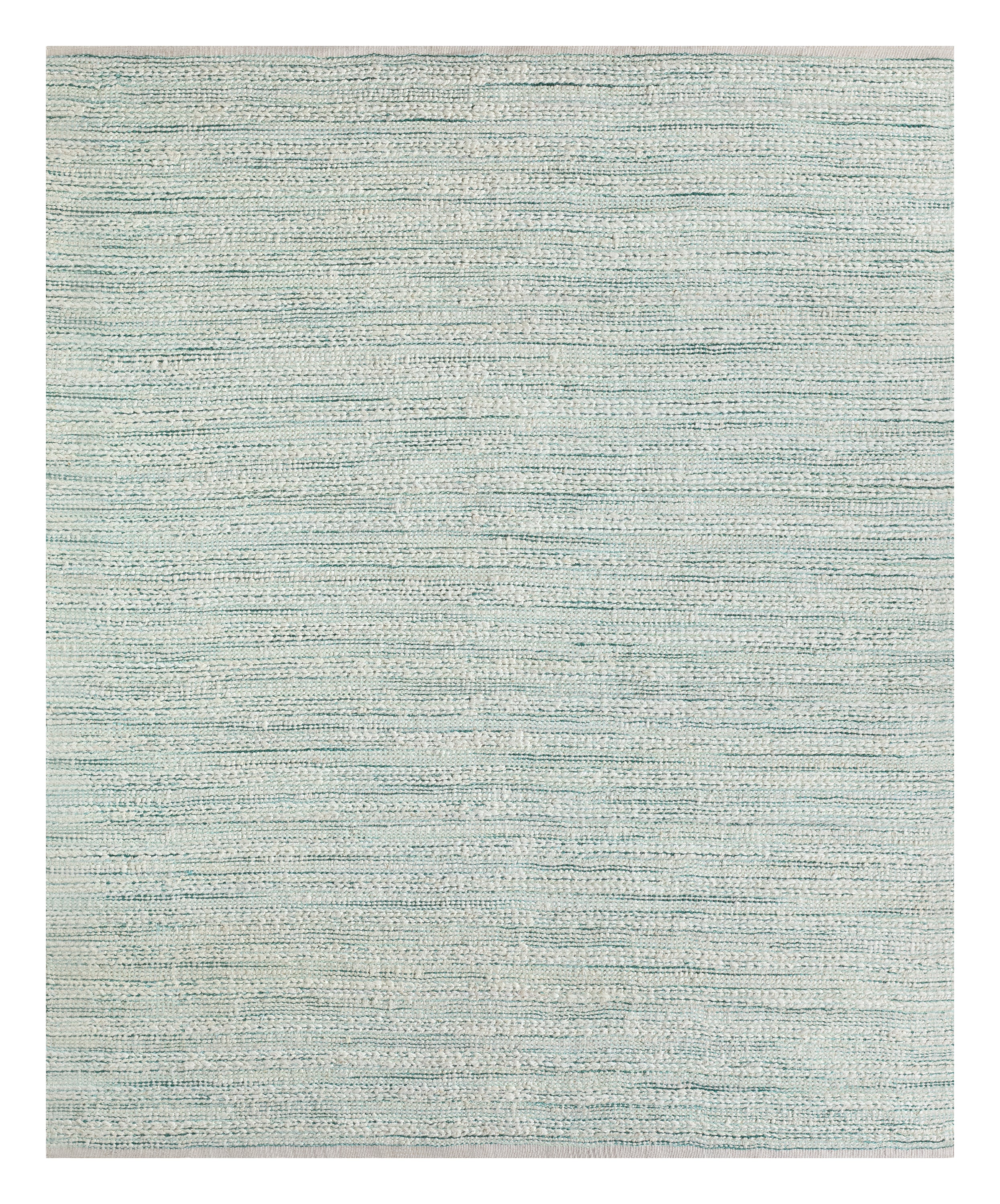 A natural area rug with a contemporary touch, this cotton-backed layer pops with a bleached white tone and hints of turquoise striated accents. The organic texture of the hand-woven rayon and jute fibers offers an intriguing feel and bohemian-inspired style.