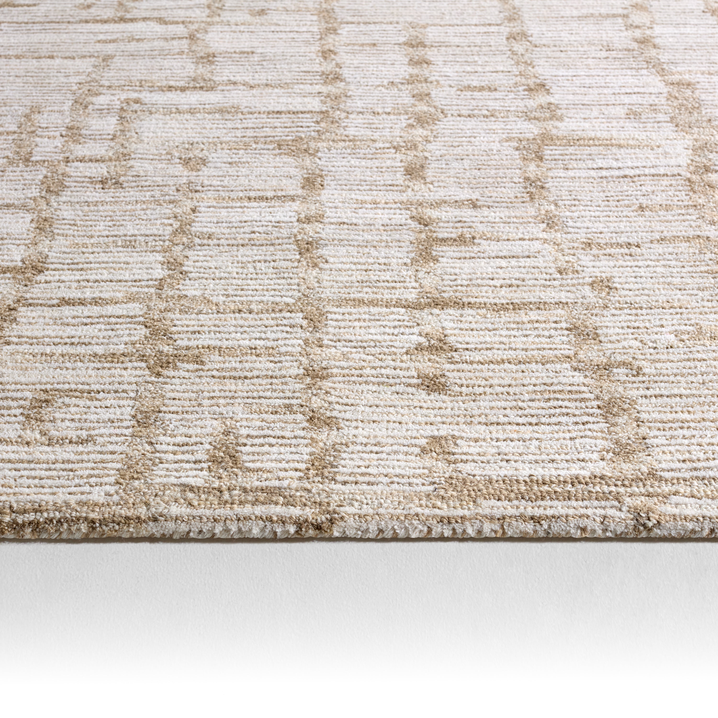 The hand tufted Labyrinth collection showcases abstract designs with wool, cut and looped pile for texture. The Herculean design features a meandering abstract motif in neutral hues of caramel, cream, and tan. The cut and loop pile provides rich texture and best suits medium to low traffic spaces of the home like bedrooms, formal living spaces, formal dining rooms, and sitting rooms.