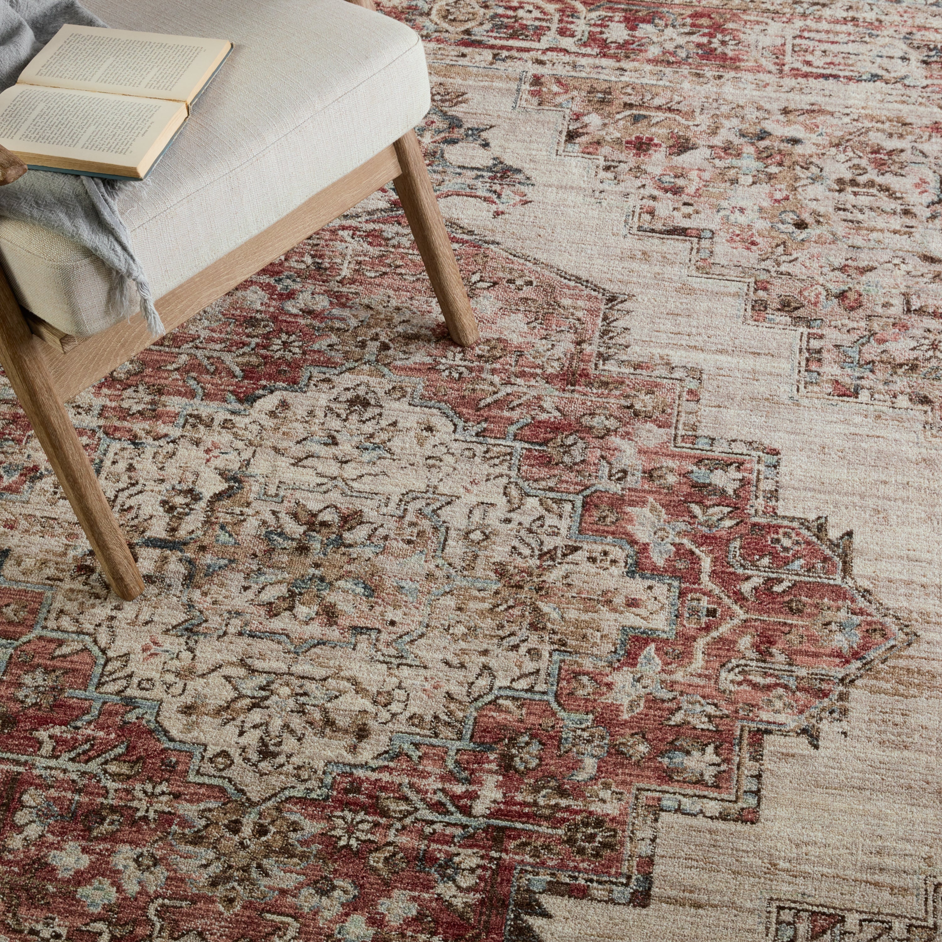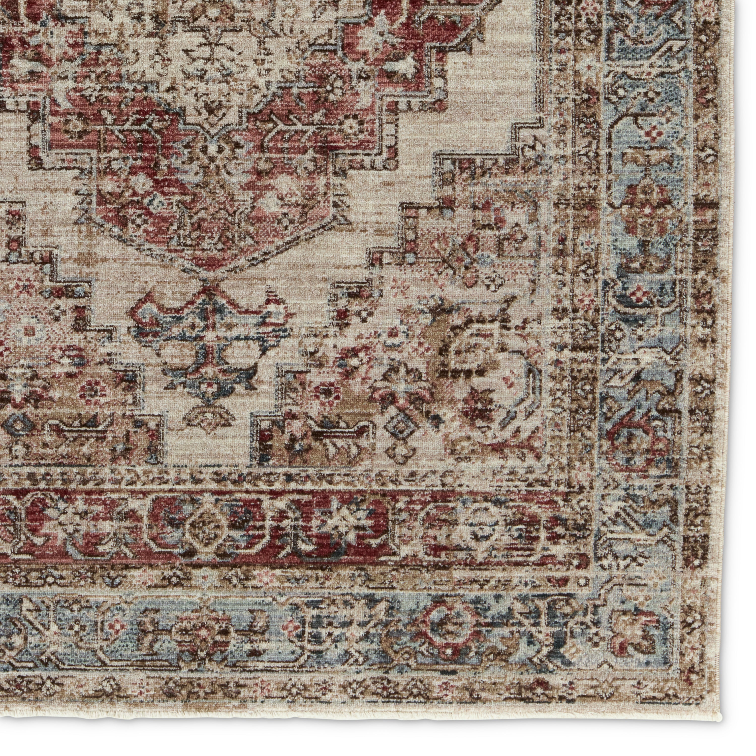 Inspired by fine, handcrafted designs of Chobi rugs from Afghanistan, the Leila collection makes traditional beauty accessible. The Emory area rug features a distressed, medallion design in rich tones of red, blue, grey, and brown. This polyester accent is durable and easy-to-clean, offering the perfect grounding accent to homes with pets or kids. This indoor rug works perfectly in high traffic areas such as living rooms, halls, entryways, and dining areas.