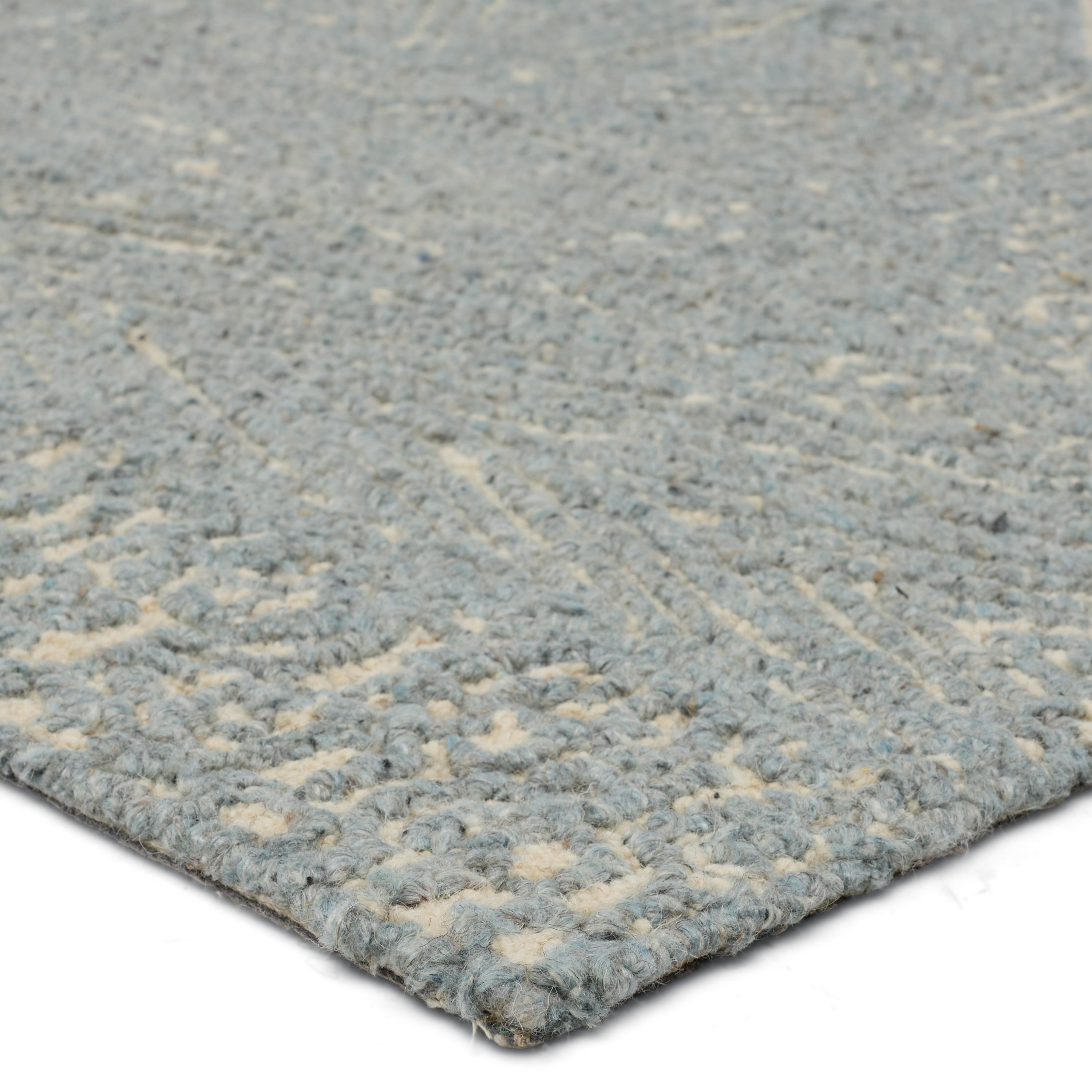 The stunning hand-tufted Lineage collection boasts intricate detailing and beautiful texture. A modern take on African and Moroccan motifs, these wool rugs lend pattern and interest with the versatility of neutral tones. The intricate Viatte design features an eclectic mesh of stripes and geometric shapes that creates a stunning accent piece. Made of blue and cream looped pile with varying height, this texture-rich area rug thrives in medium and low traffic areas of the home like bedrooms, formal living areas, and dining rooms.