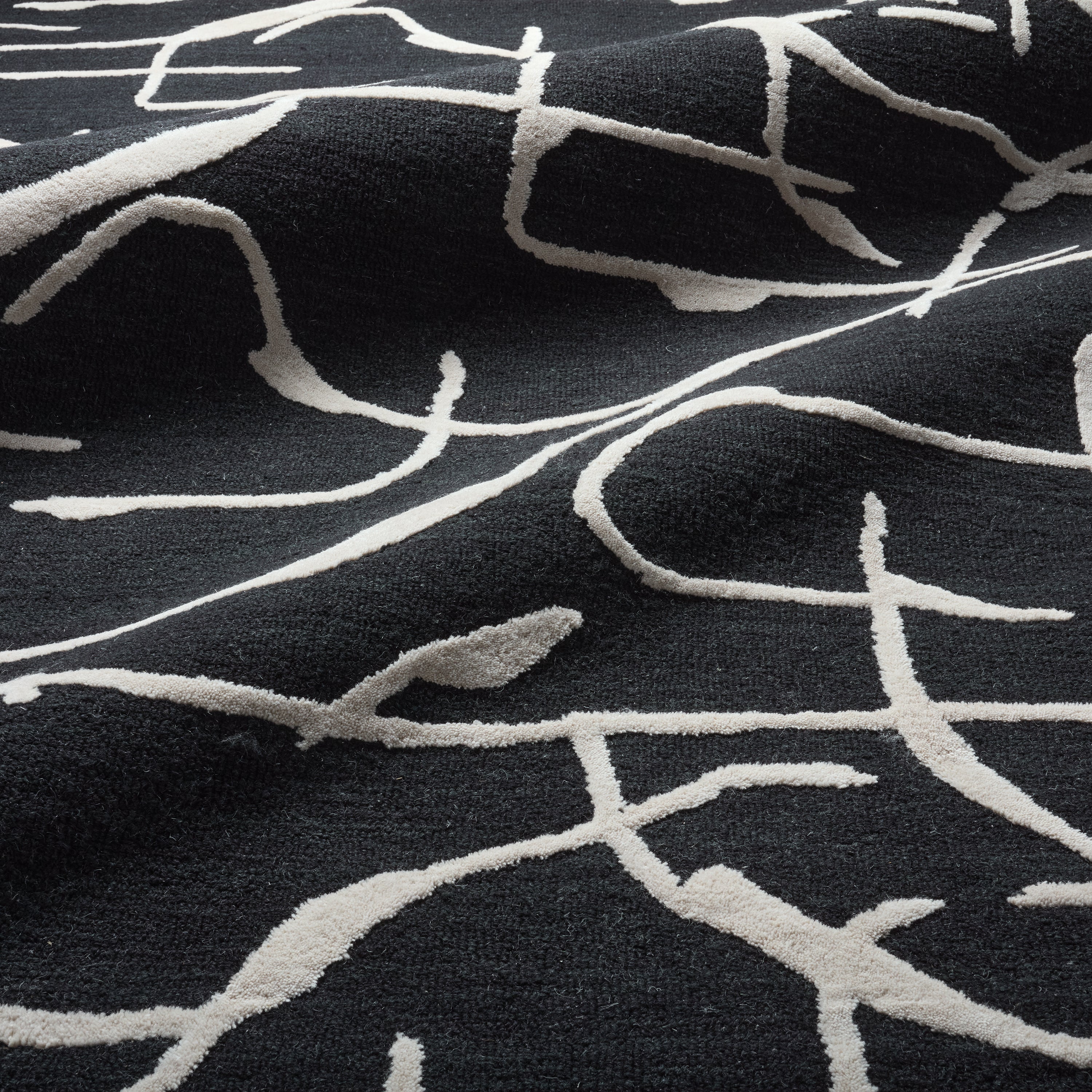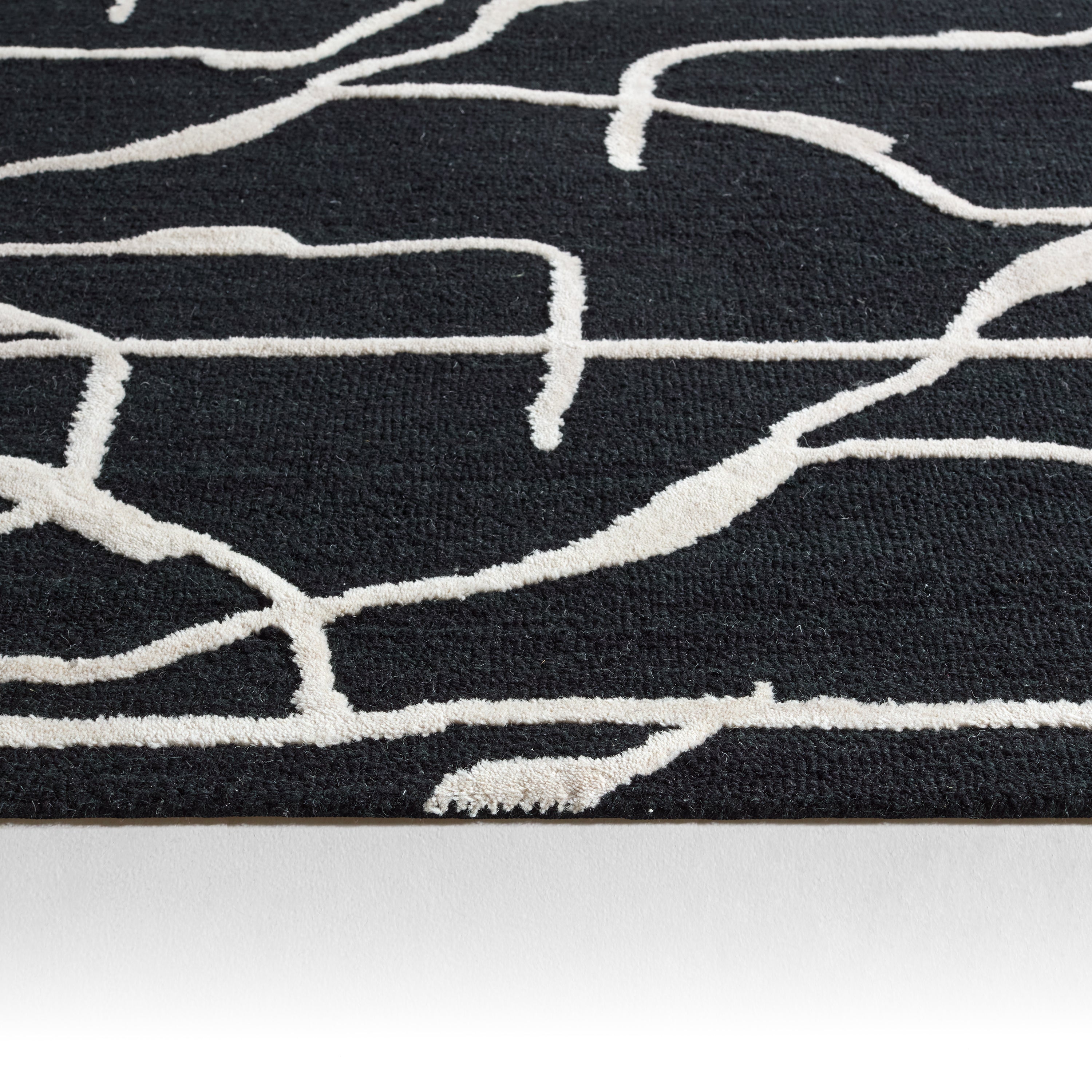 The hand-tufted Mallino collection designed by Nikki Chu infuses homes with contemporary appeal and stylishly contrasting motifs. Handmade of durable wool, this rug boasts a plush, inviting feel underfoot. The abstract design in tones of black and cream invoke an effortlessly chic style. This accent piece perfects high and low traffic of the homes, such as living rooms, bedrooms, halls, and formal dining areas.