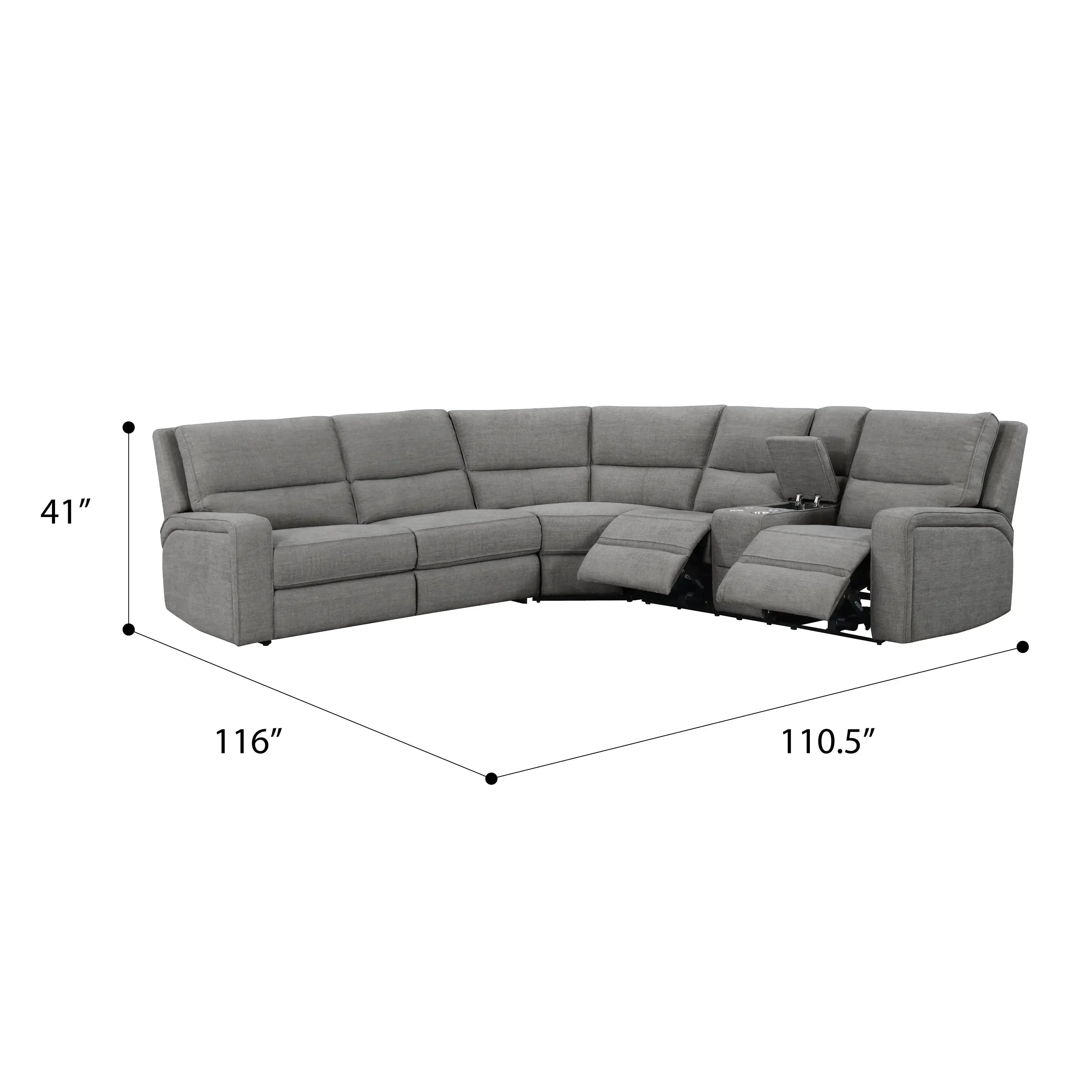 The Medford sectional has it all— a storage console with cup holders, three power-recline seats and seating for the whole family. The neutral palette and contemporary design elevate the style of your home and make this the perfect place to entertain or just lie back and relax.