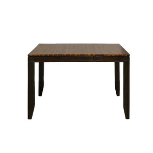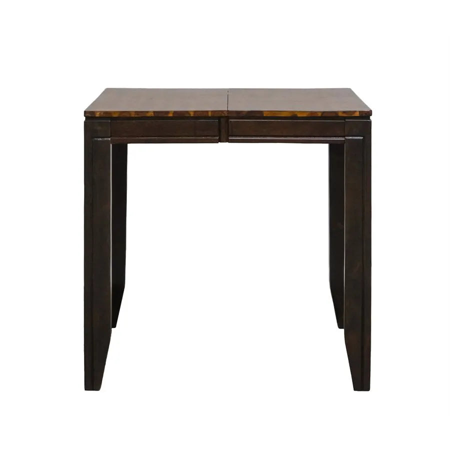 Like the best of outfits, the Melissa collection bridges the space between casual and formal. Inset channels across the apron and down the legs accentuate the tailoring of blocks legs that gracefully taper as they near the floor. With a self-storing butterfly leaf, the gathering height table easily converts from a table for six to a party for eight. Shaped and contoured wood seats invite you to perch atop the ladderback barstool for a quick breakfast or leisurely brunch. Every movement of light across the solid acacia wood construction brings this two-tone finish to life. Caramel colors swirl across the grain on the tabletop and seats, then settles into a deep glow in the dark brown bases. Watch how the colors shift from sunlight to candlelight as Melissa seamlessly transitions with your dining space from day to night.
