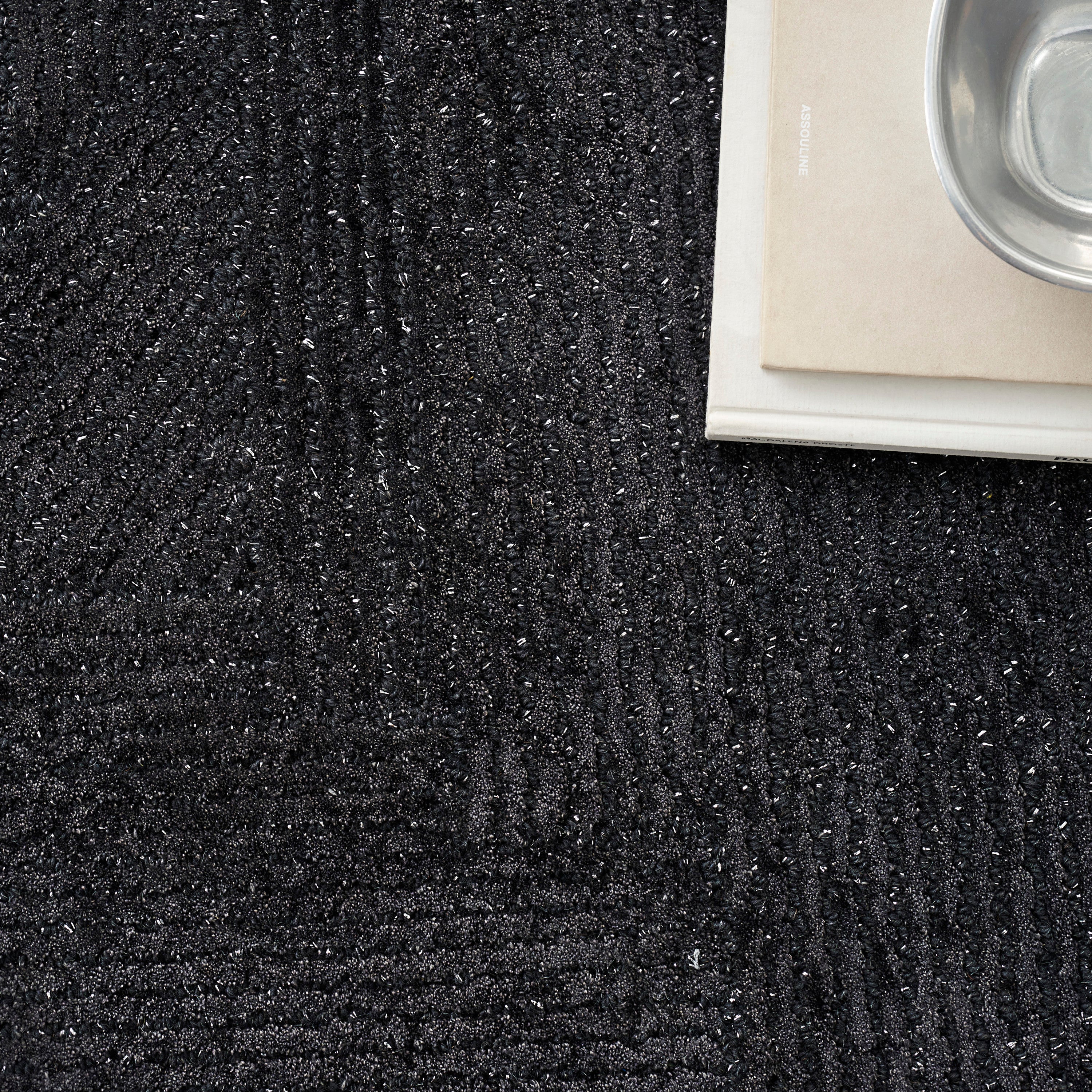 Crafted in bold abstract style, this modern rug from the Michael Amini Star Collection by Nourison is a mesmerizing addition to your home décor. This statement making design showcases an overlapping linear pattern in black, enhanced by shimmering accents that shift beautifully with changes in light. Handmade in high-low style from a luxurious blend of wool, lurex, and silk-like Luxcelle fibers that feel wonderfully soft underfoot.