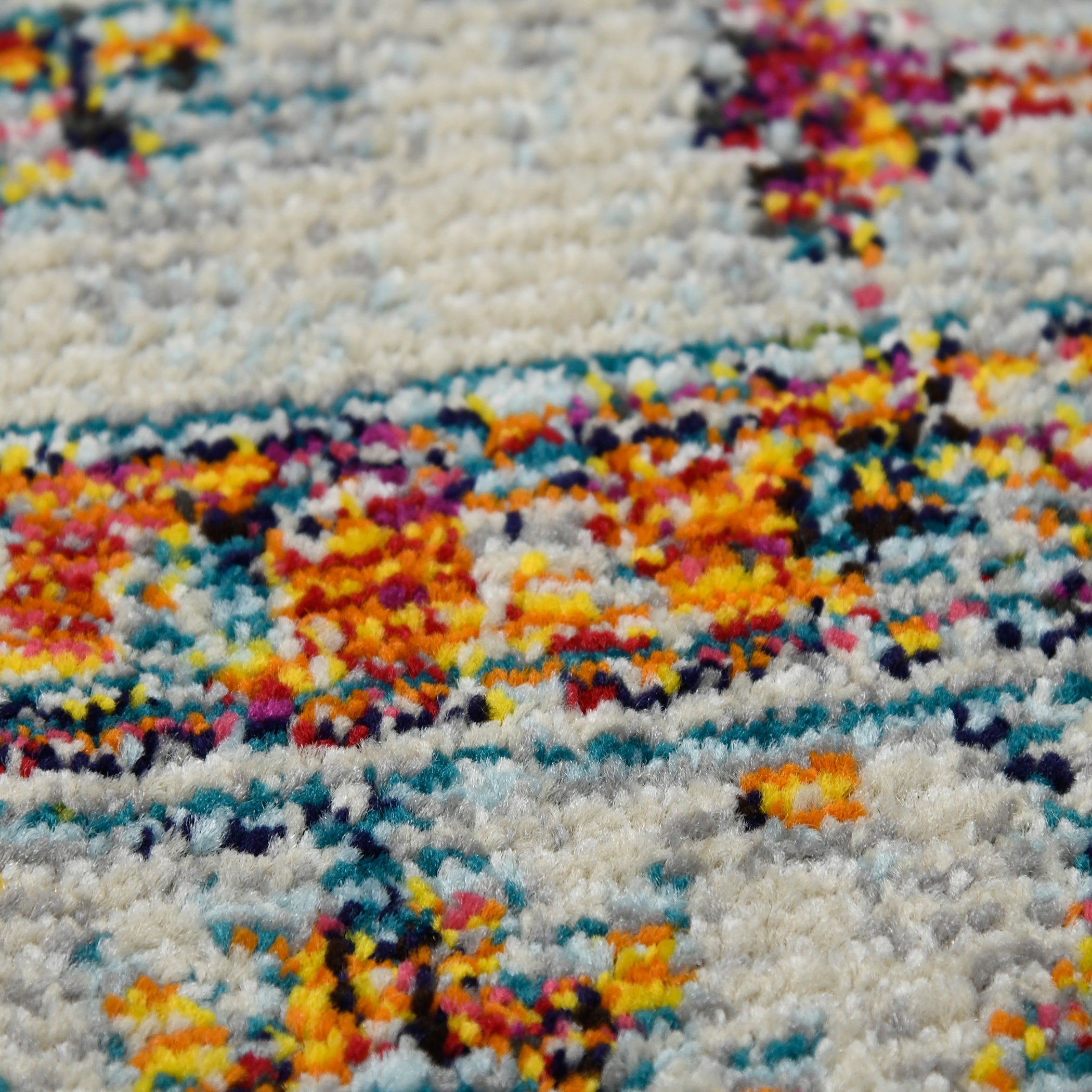 This trendsetting rug includes bright colors and exciting inspiration from exotic urban food and spice markets. With its carefully crafted uptown bohemian patterns, this rug will add a symphony of brilliant color to any room. This rug features a flat pile height that allows for easy maintenance, and is made of 100% power-loomed polypropylene which gives it durability and strength. This rug will be a welcome addition to any room in your home.
