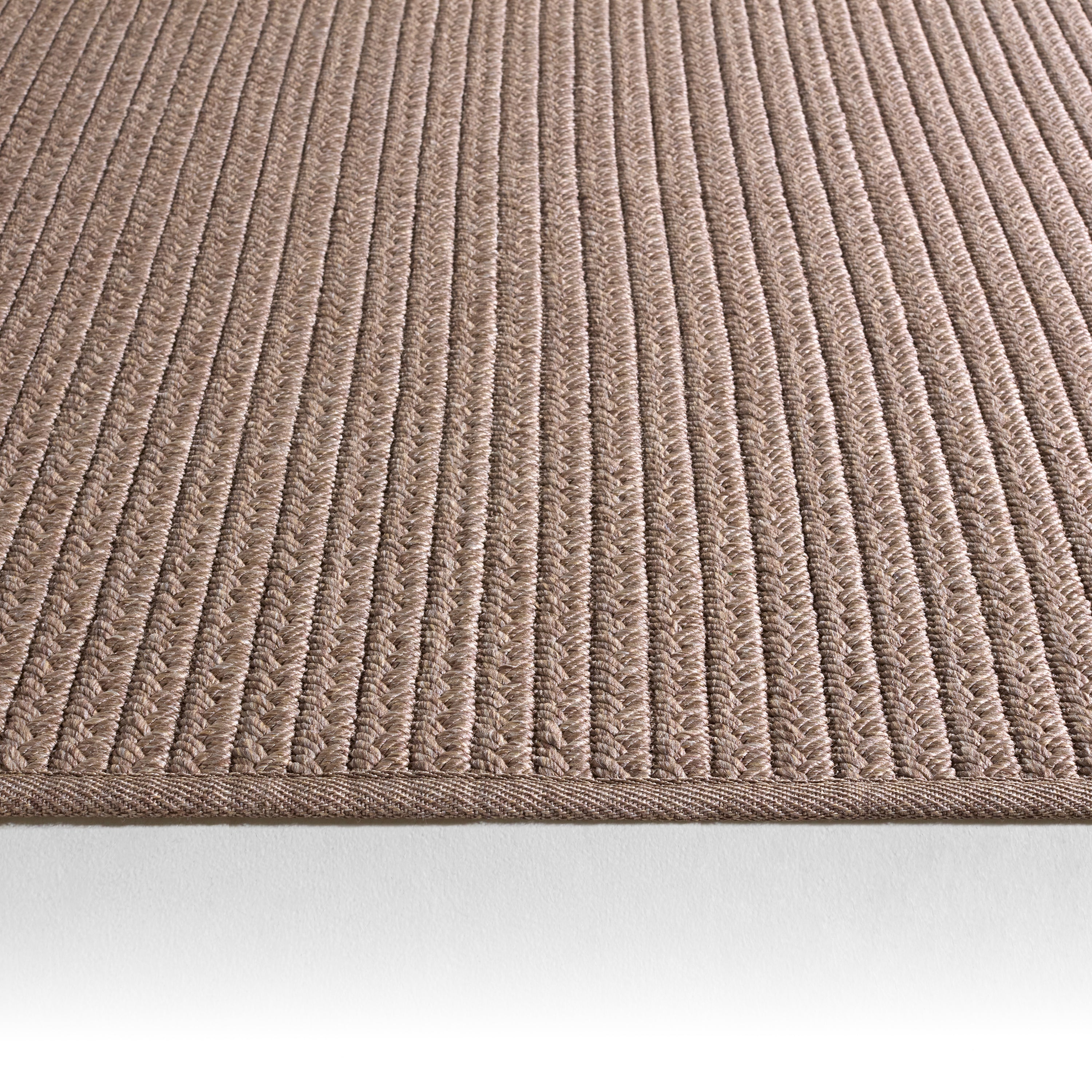 The Nirvana Premium collection offers a boldly textured and grounding accent to modern homes. The light tan Iver rug boasts a handwoven polypropylene and polyester construction for an easy-to-clean, weather resistant option that complements clean, Scandinavian interiors and relaxed, sophisticated outdoor areas alike.