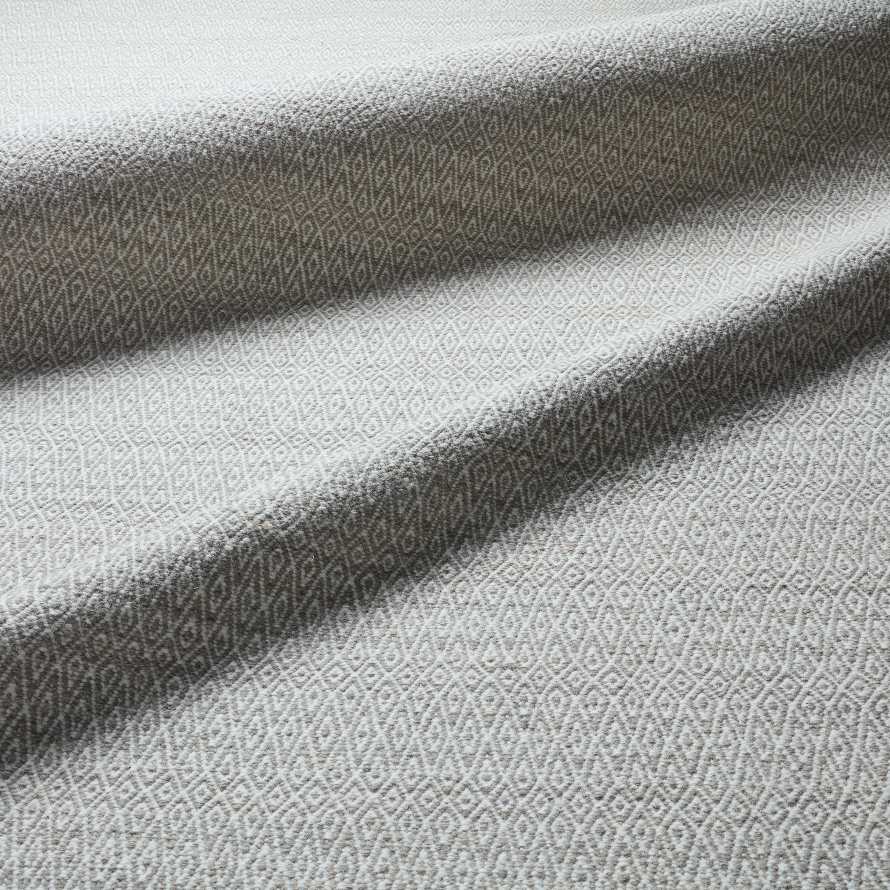 Easy versatility defines the stylish appeal of the Poise collection. The Eulalia flatweave rug shows off a captivating diamond trellis pattern in light neutral hues of ivory and light grey. This low-profile accent is durable in a 100% wool construction, ideal for kitchens, dining spaces, and well-trafficked areas.