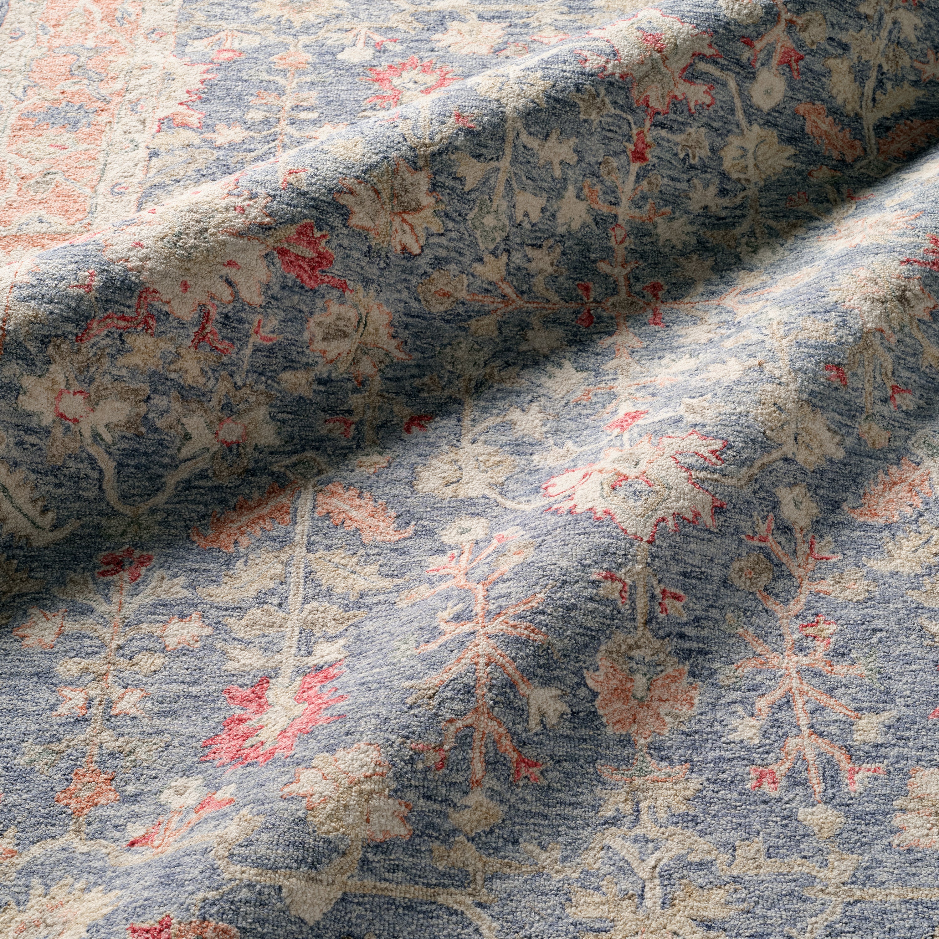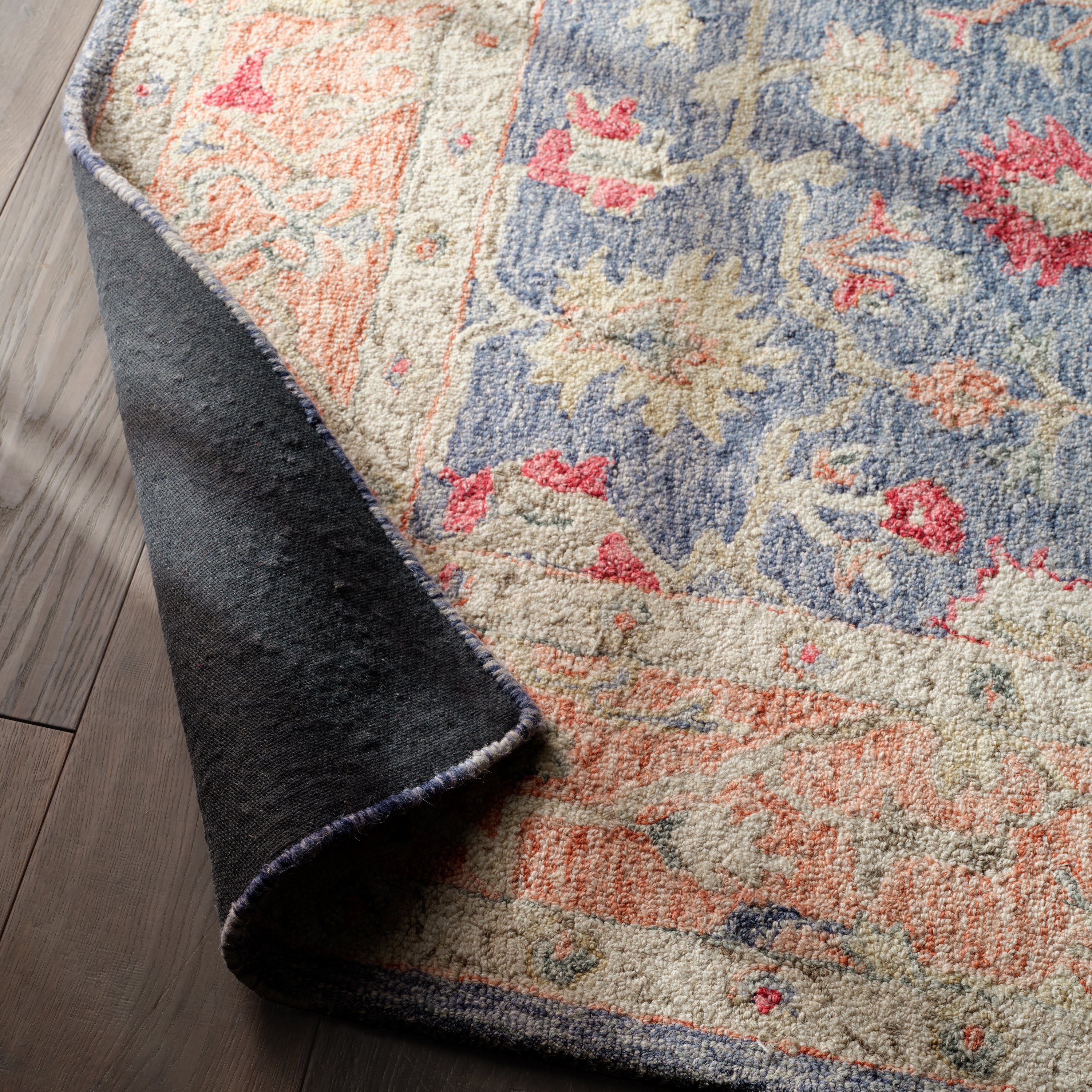 The hand-tufted Province collection is an inviting assortment of transitional colorways and classic designs. Inspired by Arts and Crafts floral motifs, the Presley area rug boasts a detailed Oushak pattern in faded blue, red, and orange hues. Crafted of durable wool, the looped pile provides a wonderfully cushioned feel underfoot.