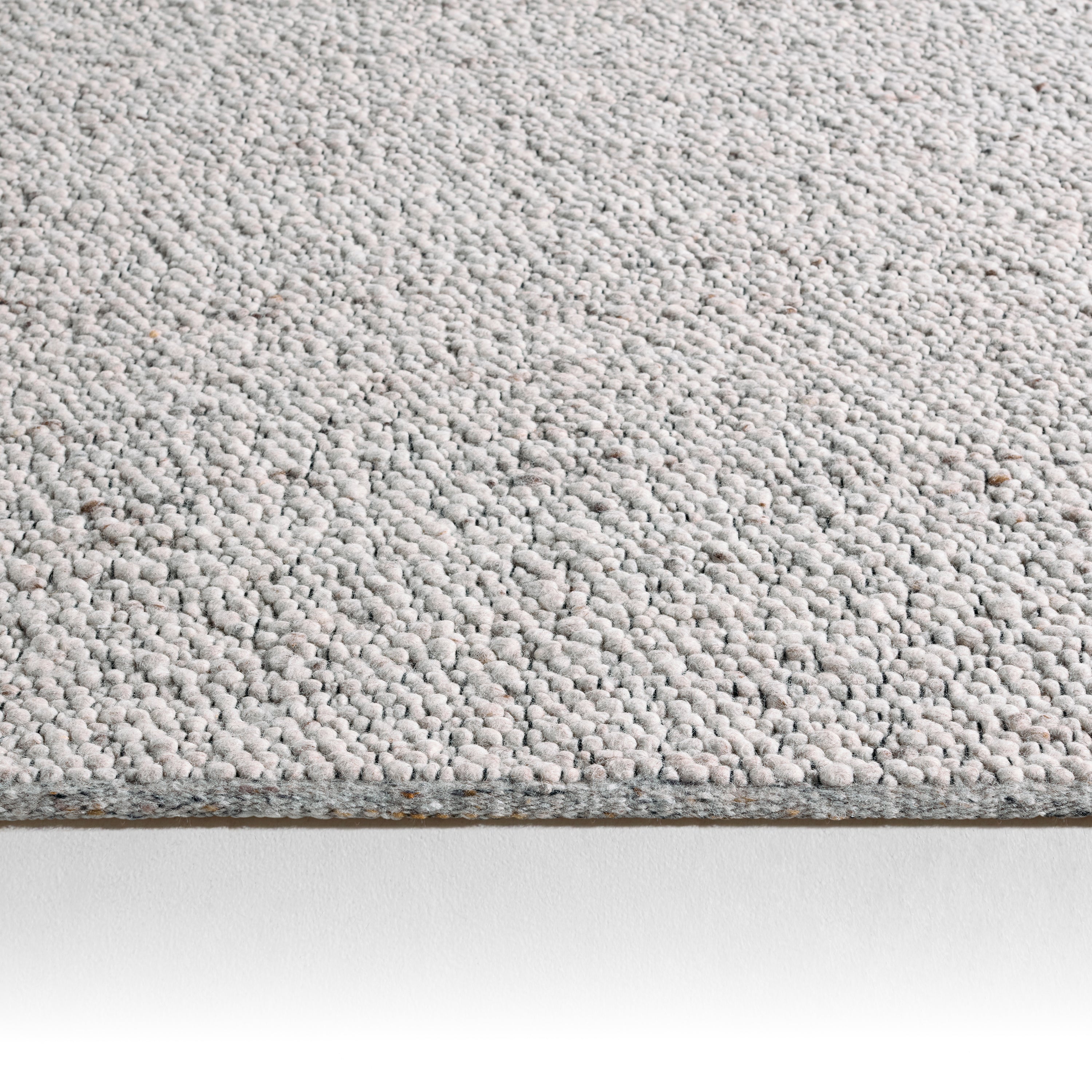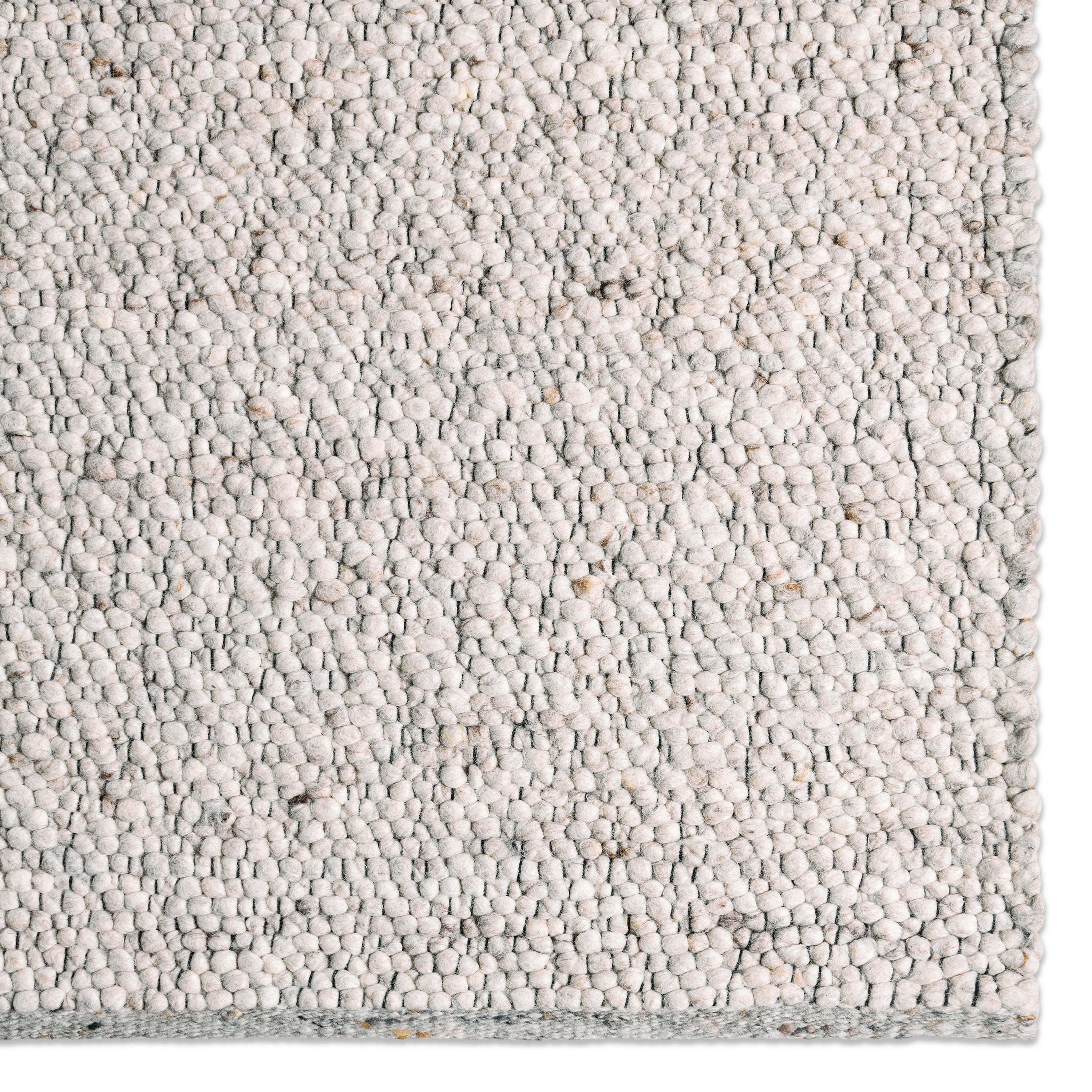The Quiet Time collection offers textural yet solid designs for modern spaces in need of a relaxed and inviting accent. Handwoven of wool and jute, the Hadren rug showcases a texture-rich boucle design with neutral hues of cream, ivory, brown, and light grey. This grounding rug is perfect for layering with other textile mediums or complementing a hygge-centric home.