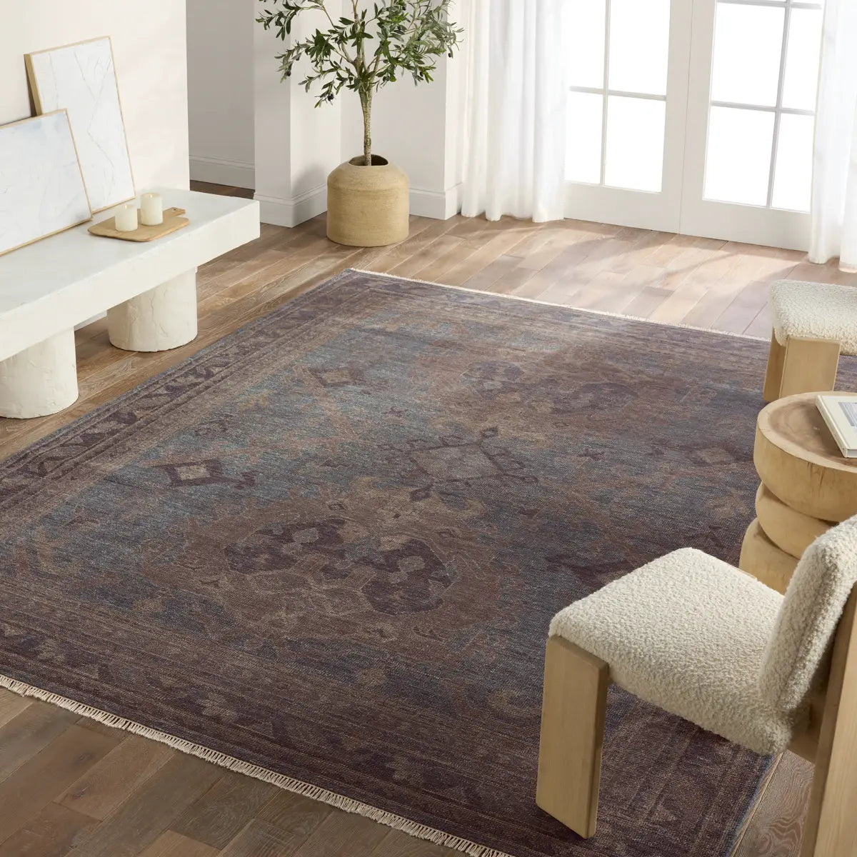 The Rhapsody collection features heirloom-quality designs of stunningly abrashed Old World patterns. The Kortan area rug boasts a beautifully distressed mini-medallion motif with a decorative, multi-layered border and geometric detailing. The brown, cream, and tan hues add depth and intrigue. This durable wool handknot anchors living spaces with a fresh take on vintage style.