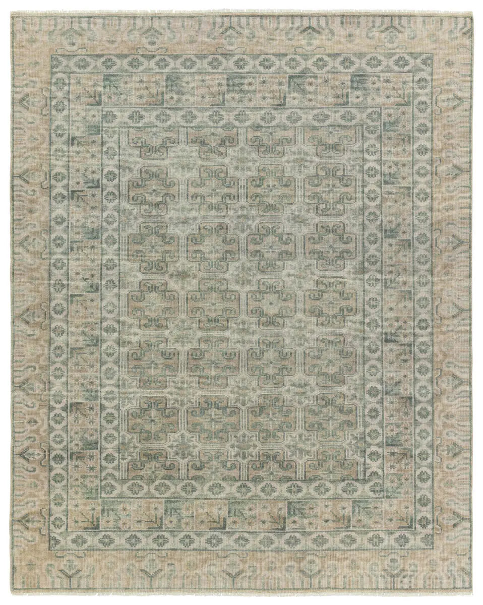 The Salinas collection is punctuated by traditional, intricate details and a soft, hand-knotted wool construction. The neutral Stage rug makes a transitional statement with grounding hues of cream, sage, and tan and vintage motifs. This durable, artisan-made rug boasts a distressed look for an Old-World vibe in contemporary spaces.