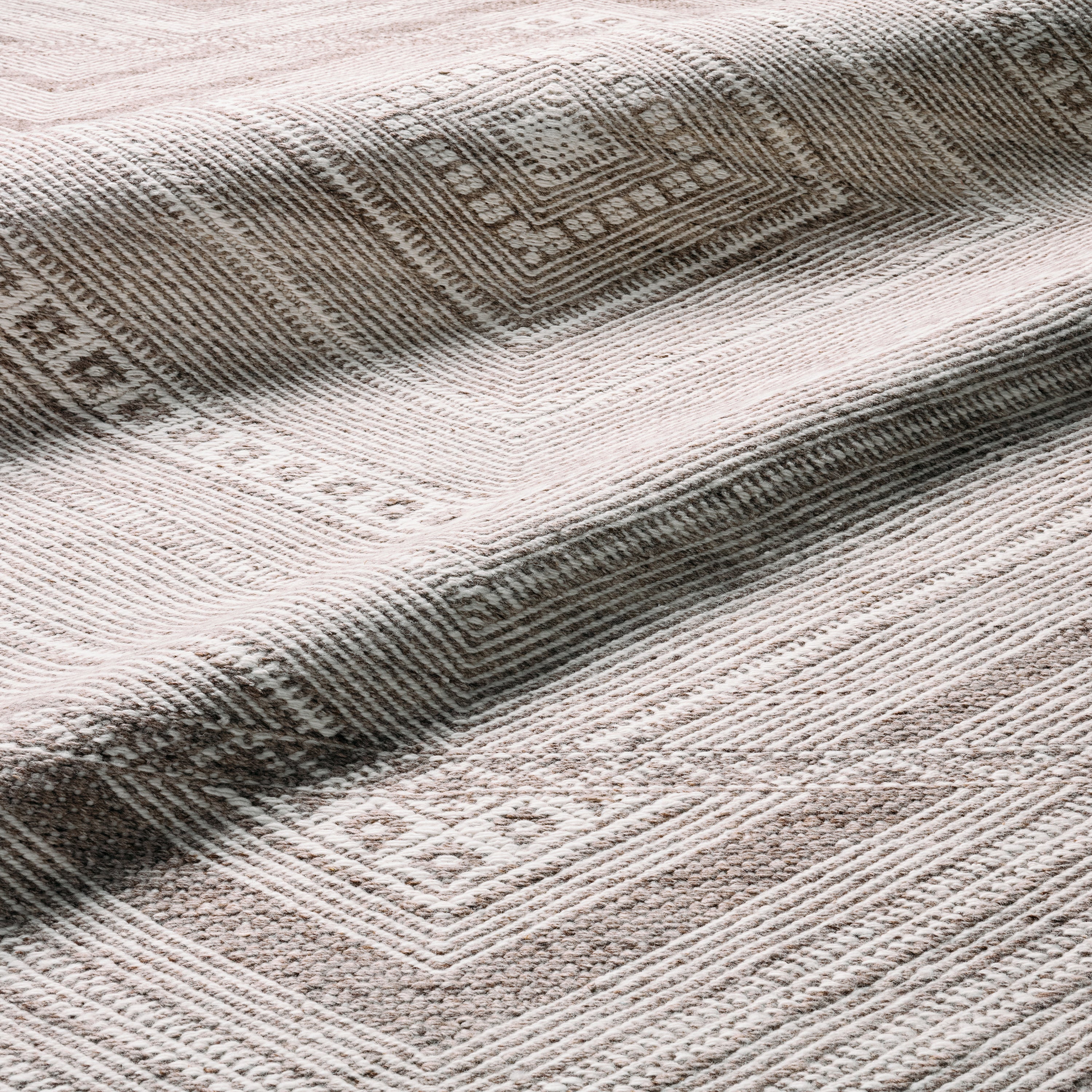 The handwoven Satori collection showcases dynamic, global designs with mesmerizing linear details and geometric motifs. The Suriya rug features a versatile, neutral palette and an intricate tribal and diamond pattern. The short fringe detail adds texture to this taupe and cream-colored piece. This Moroccan style area rug fits perfectly in high traffic areas such as entryways, halls, and living spaces.