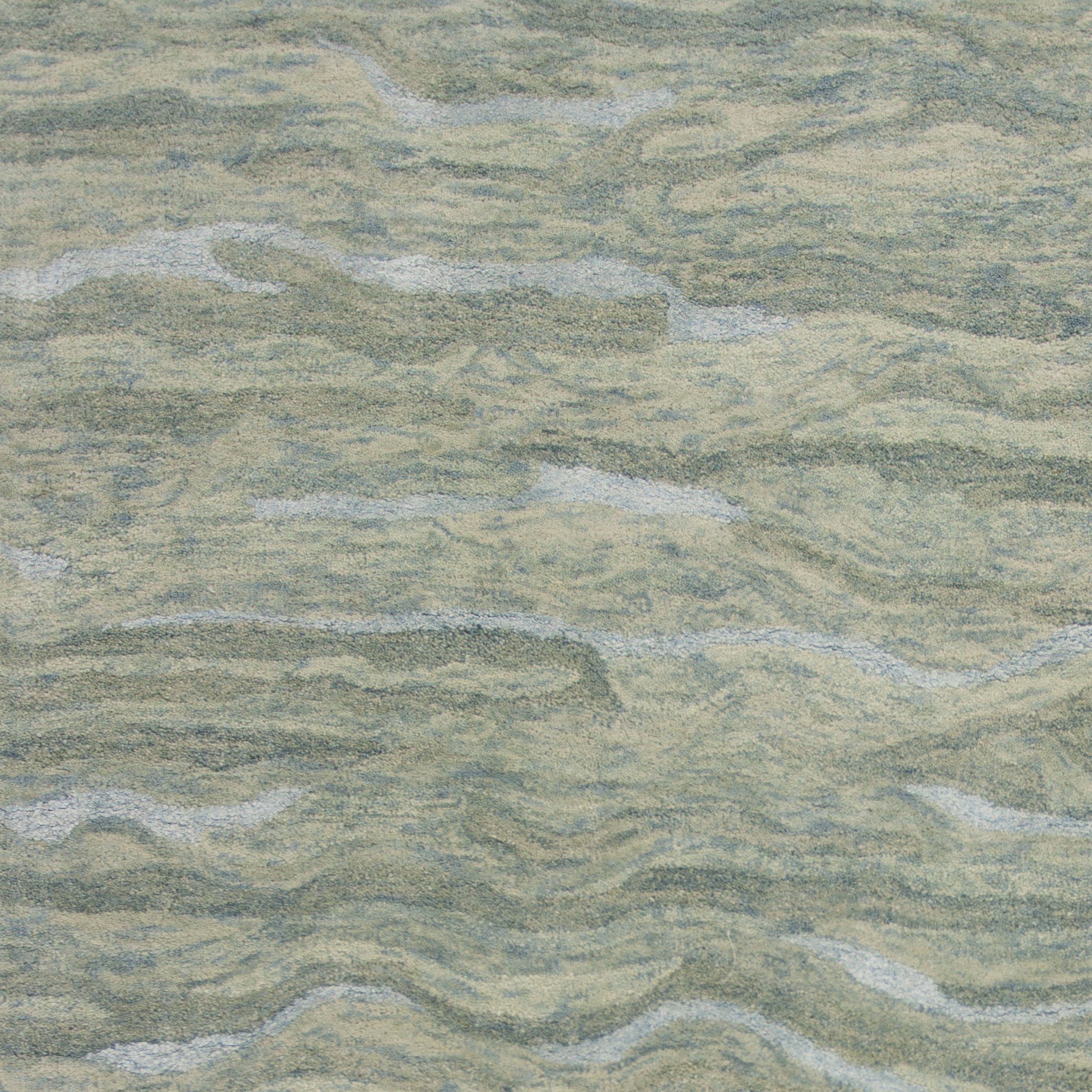 Discover your inner serenity with this collection. The texture of the wool with viscose highlights gives each rug a peaceful and serene vibe we could all use in our busy lives. This collection is beautifully hand-tufted in India with a 1/2" pile height. Serenity 1252 Seafoam Breeze 3'3" x5'3". Hand Tufted of Wool with Viscose Highlights with Cotton Backing. Made in India. Vacuum regularly & spot clean stains. Professional cleaning recommended periodically.