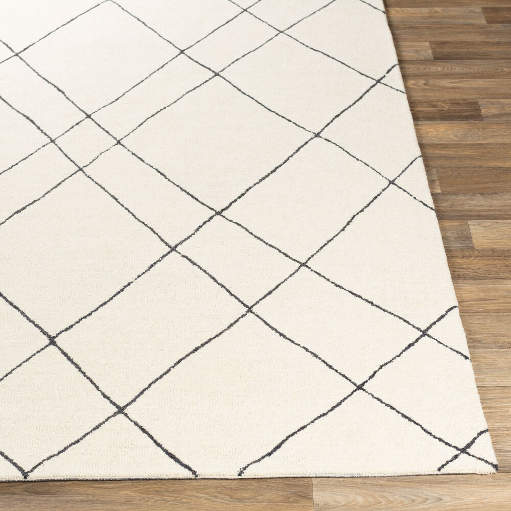 This stunning Sinop area rug adds a global flair to any room. Crafted of wool for superior durability, this medium pile rug features a high/low construction for a unique textured look. Hand tufted in India, this rug is sure to make a statement wherever it's placed. Use with the recommended rug pad (not included) for added comfort and protection. Spot clean only to preserve the life and beauty of your new area rug.