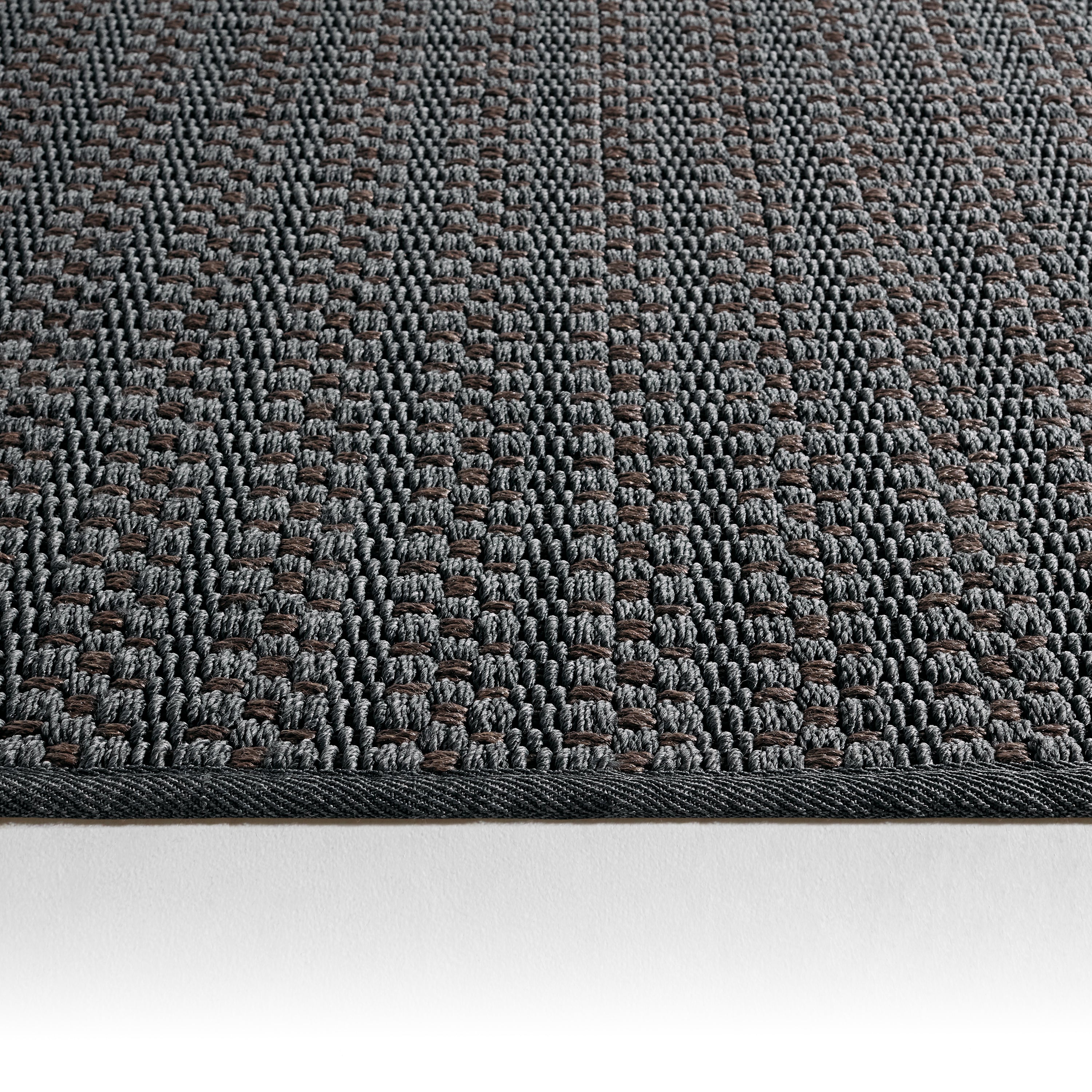 Handwoven of thick and durable performance fibers, the Talin collection offers a sturdy accent with evocative texture to any space. Neutral, versatile colorways combine with an undulating striped weave for a not-so-solid, but perfectly grounding, modern design. The Elmas design's grey and brown hues thrive both indoors and out, easily hiding dirt and scuffs from everyday foot traffic. The 100% polypropylene fibers are water, stain, fade and weather-resistant for an all-around high-performance piece for busy homes with children and pets.