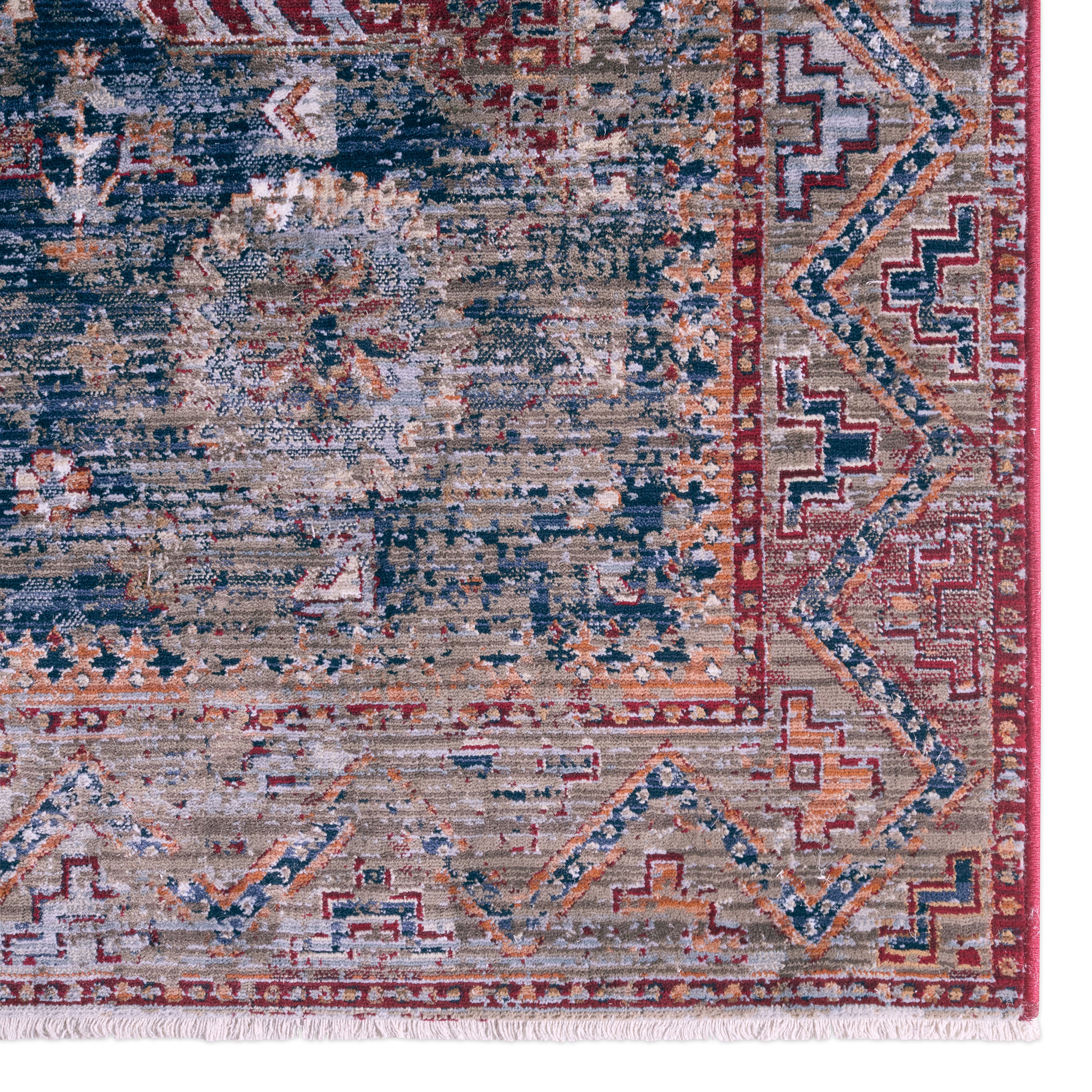 Inspired by the vintage perfection of sun-bathed Turkish designs, the Zefira collection showcases detailed traditional motifs that have been updated with on-trend, saturated colorways. The Razia rug boasts a distressed traditional pattern in tones of black, navy, gold, orange, and grey. This power-loomed rug features cotton fringe detailing, a natural result of weft yarns, that echoes hand-knotted construction and adds brilliant texture to the plush, durable polypropylene pile.